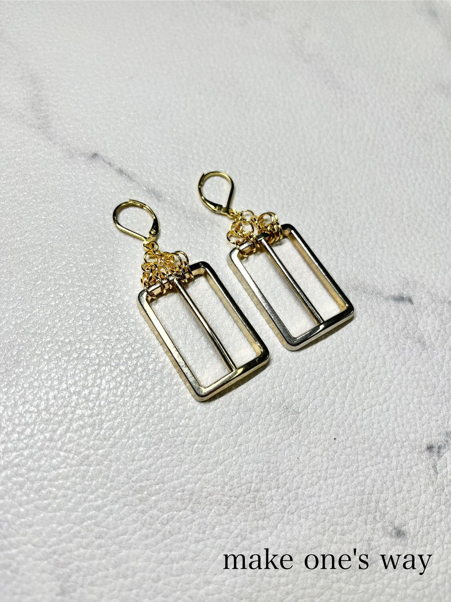 ◆ゴールドのメタルバックルが主役の大人っぽい雰囲気のピアス。