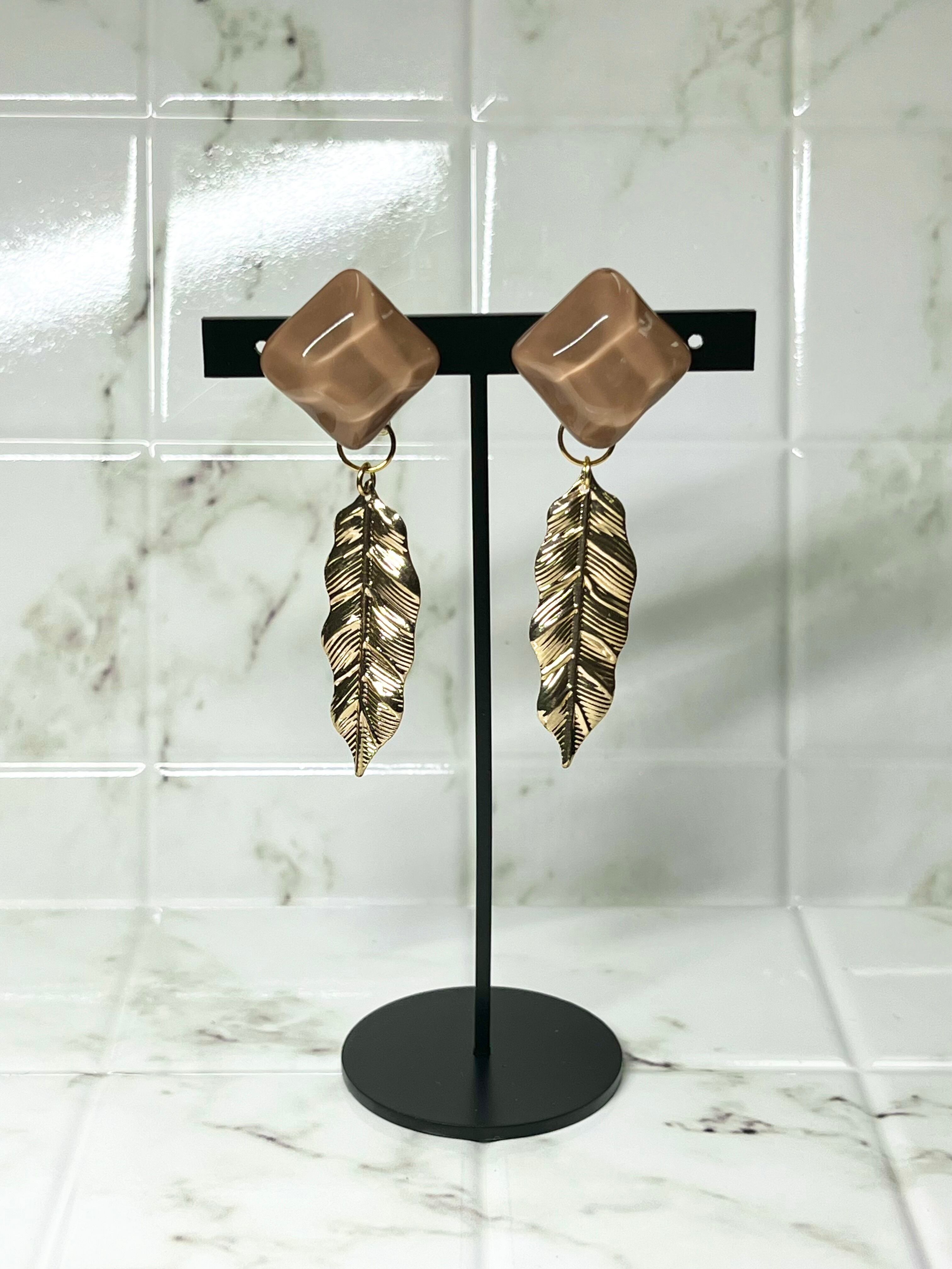 ◆ゴールドのリーフパーツで華やかさとキレをプラス。