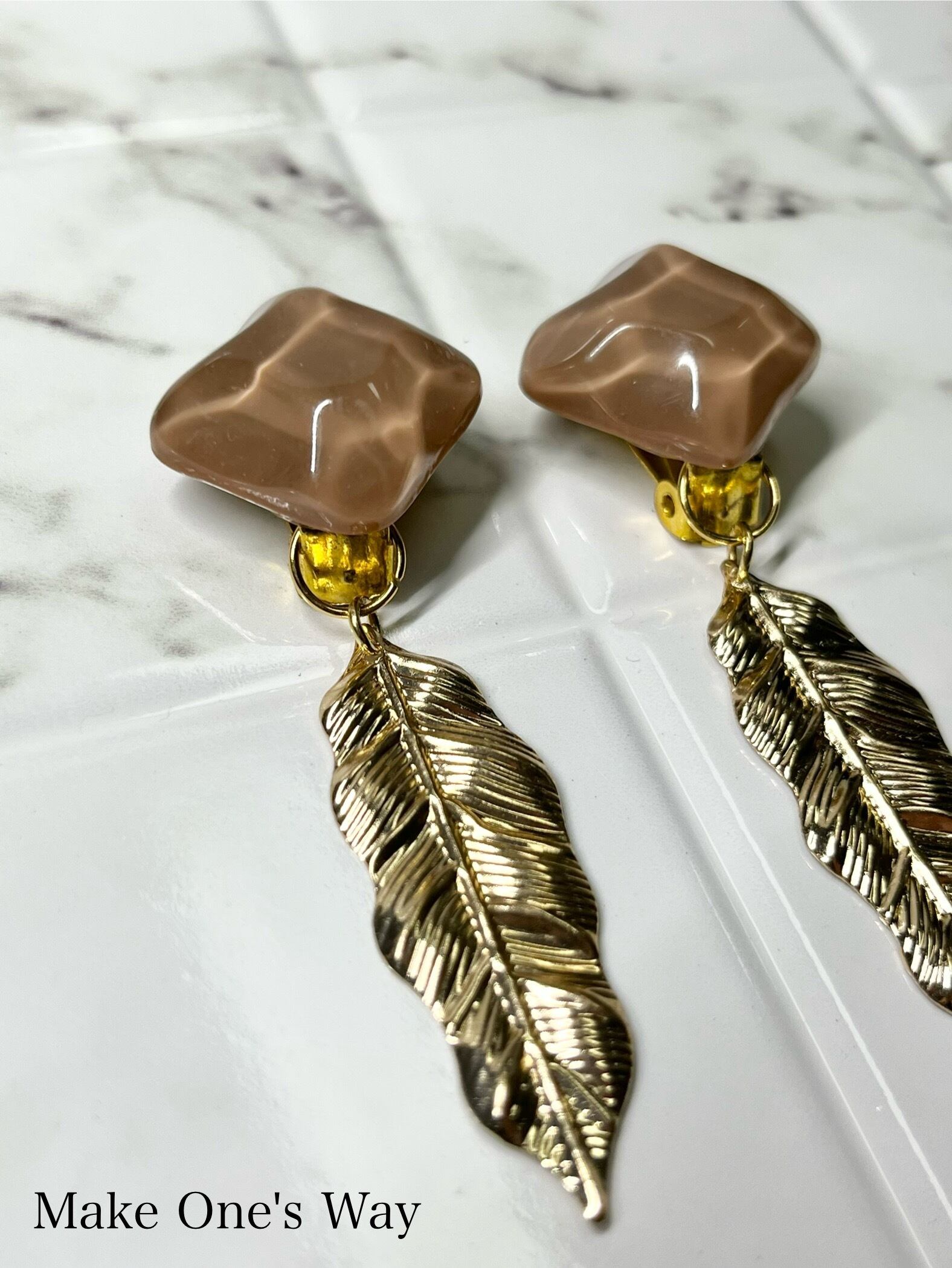 ◆透明感のある優しいブラウンのアクリルパーツが主役。