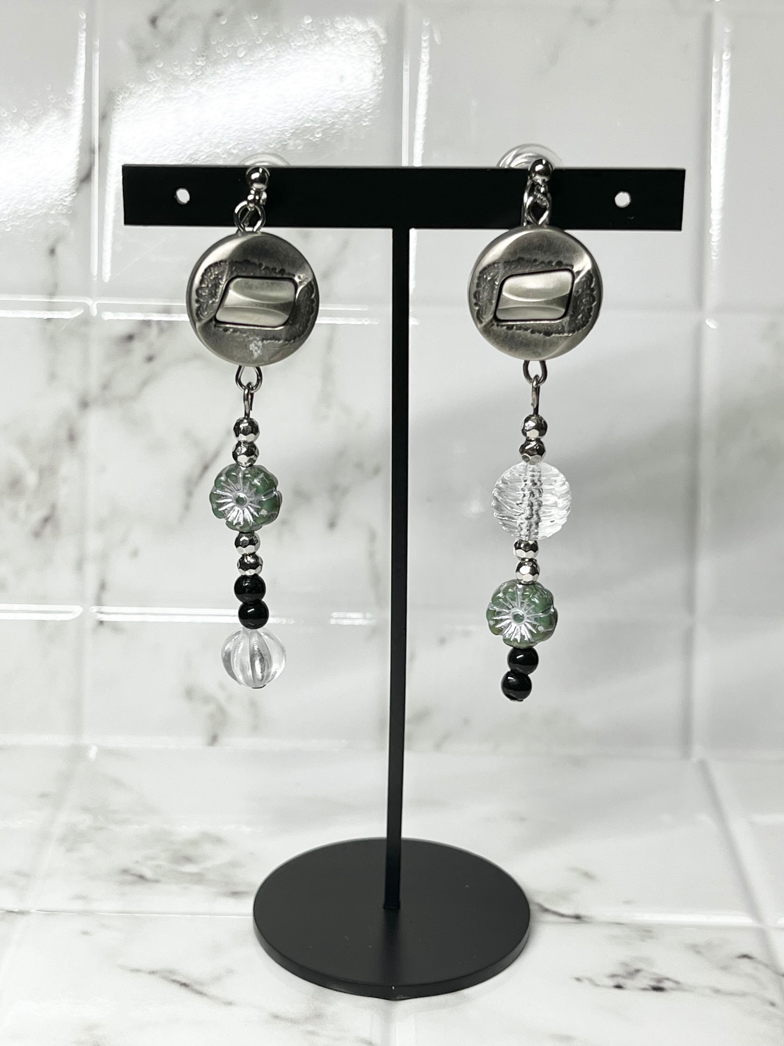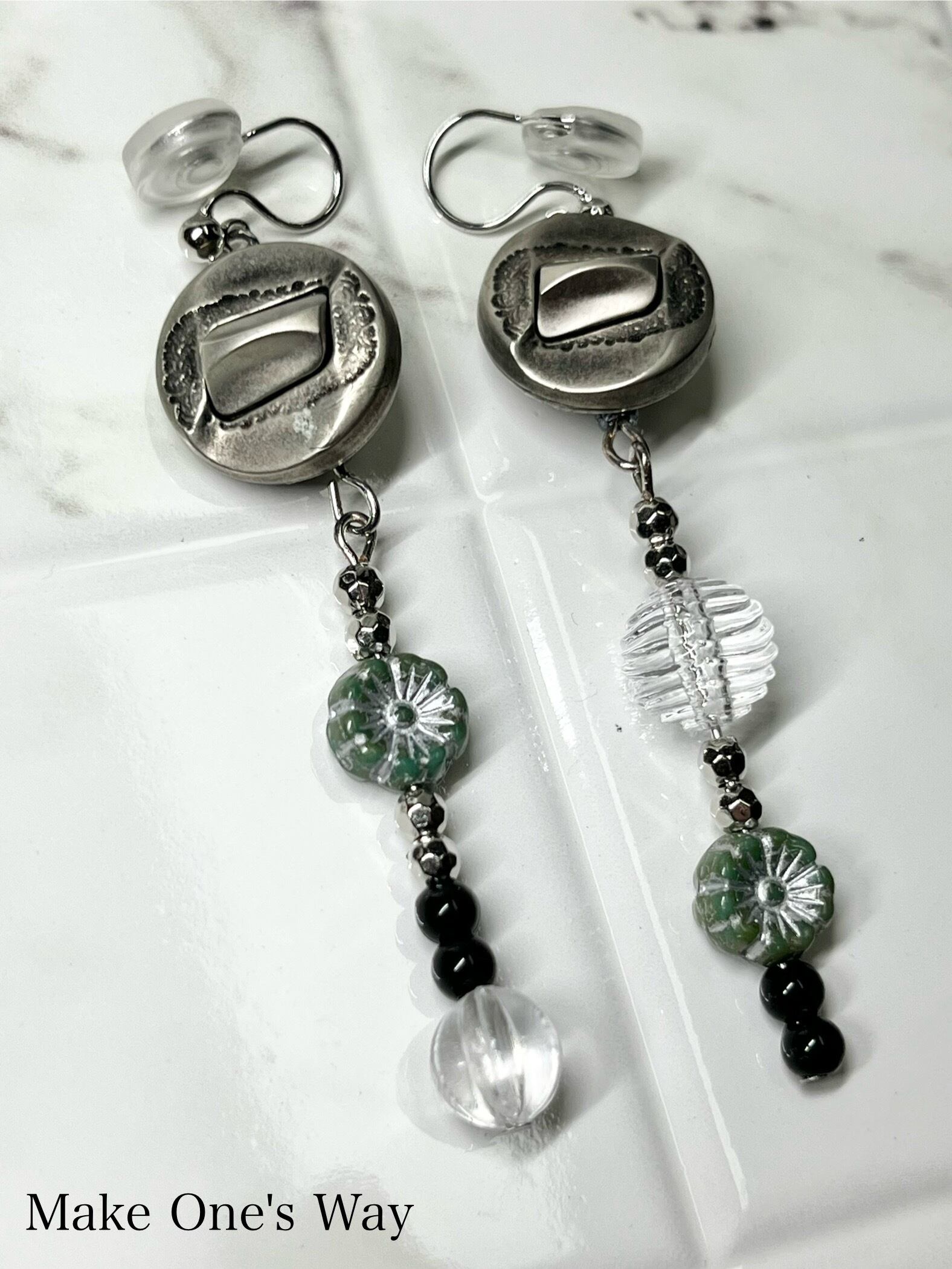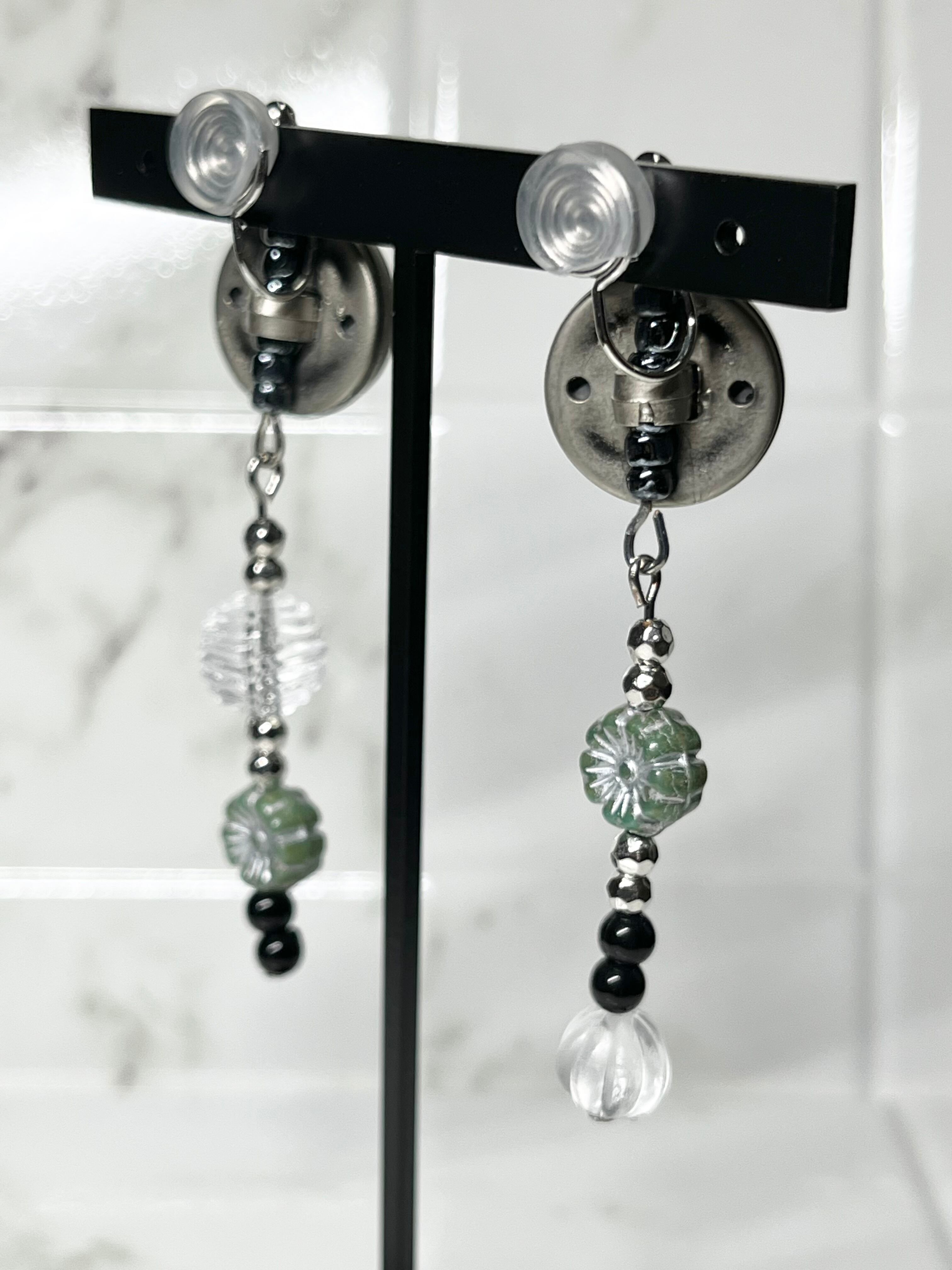 ◆素朴なグリーンのフラワーチェコビーズが可憐な雰囲気。