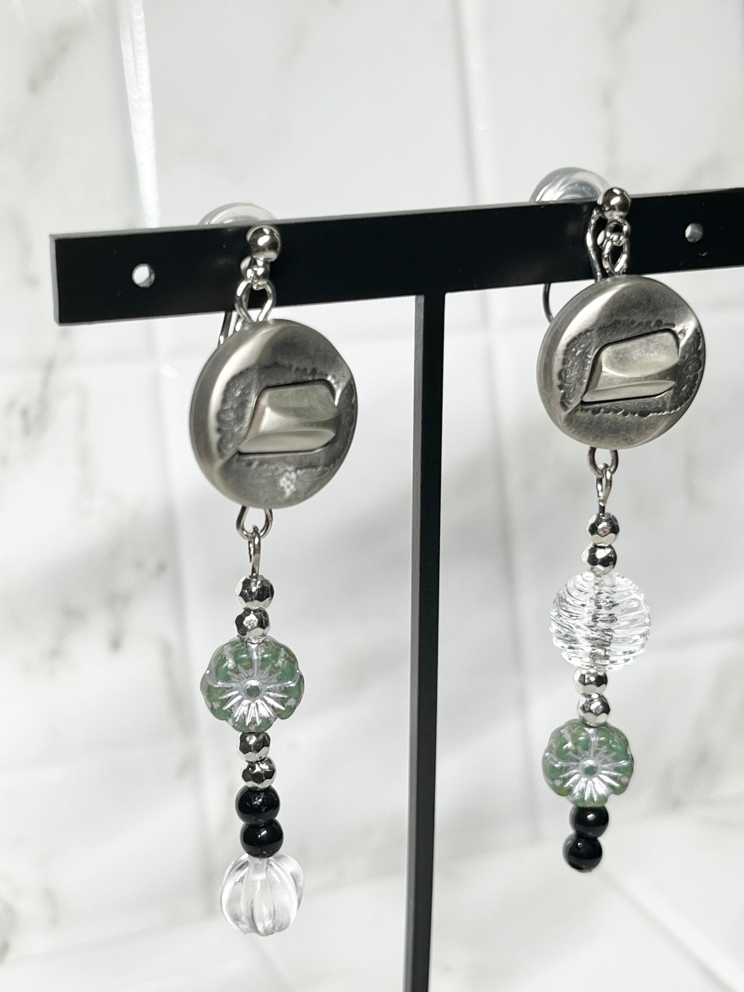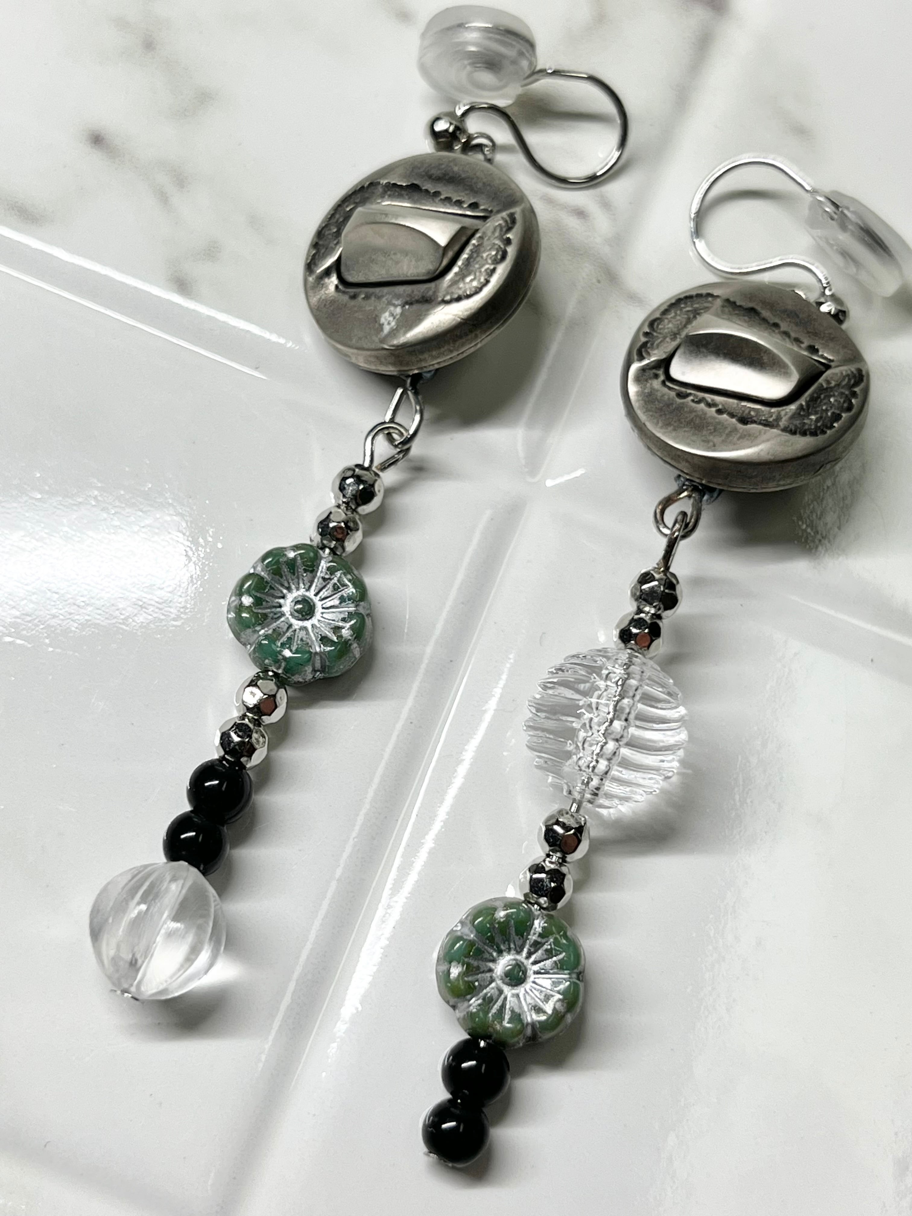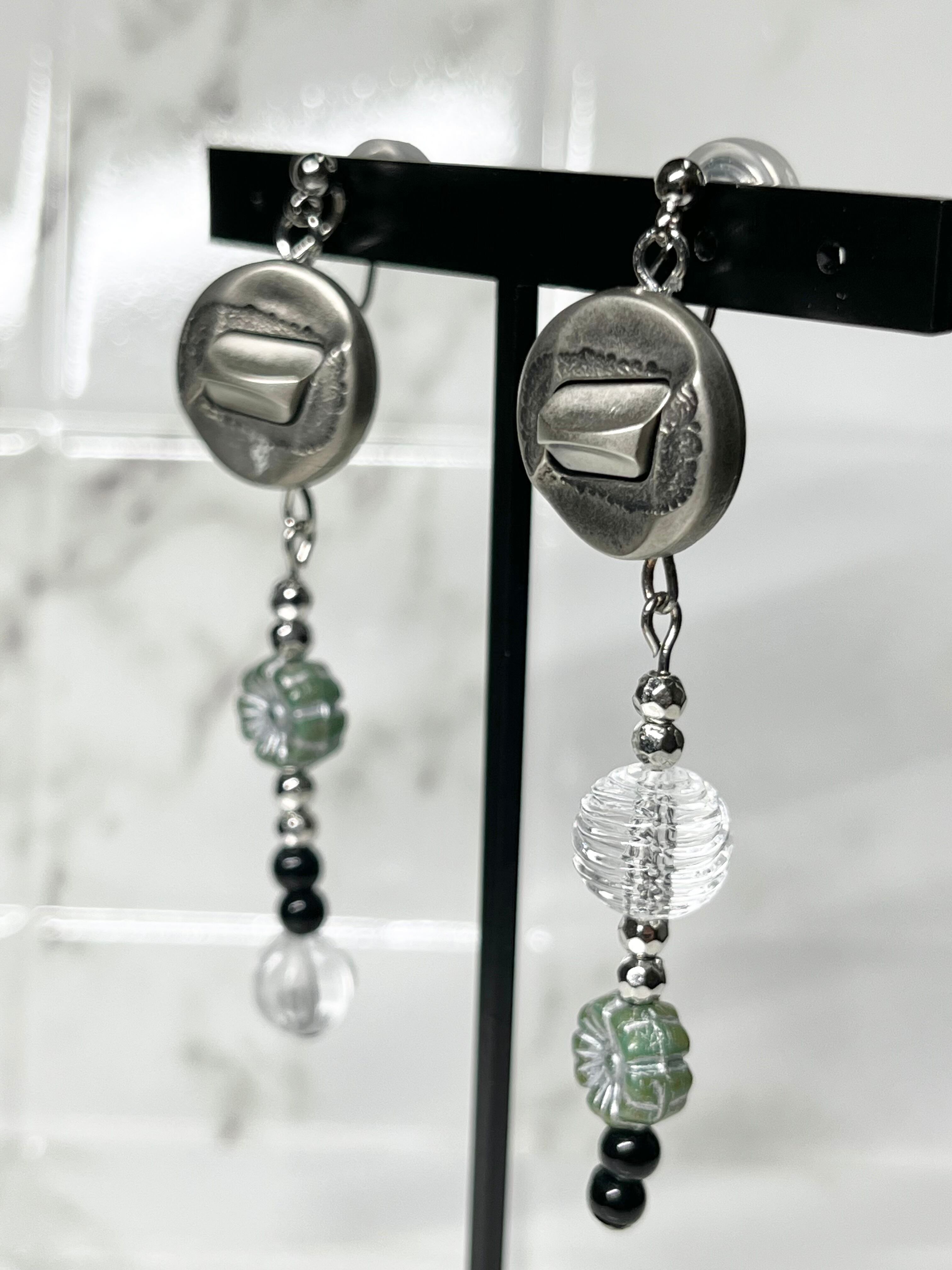 ◆素朴なグリーンのフラワーチェコビーズが可憐な雰囲気。