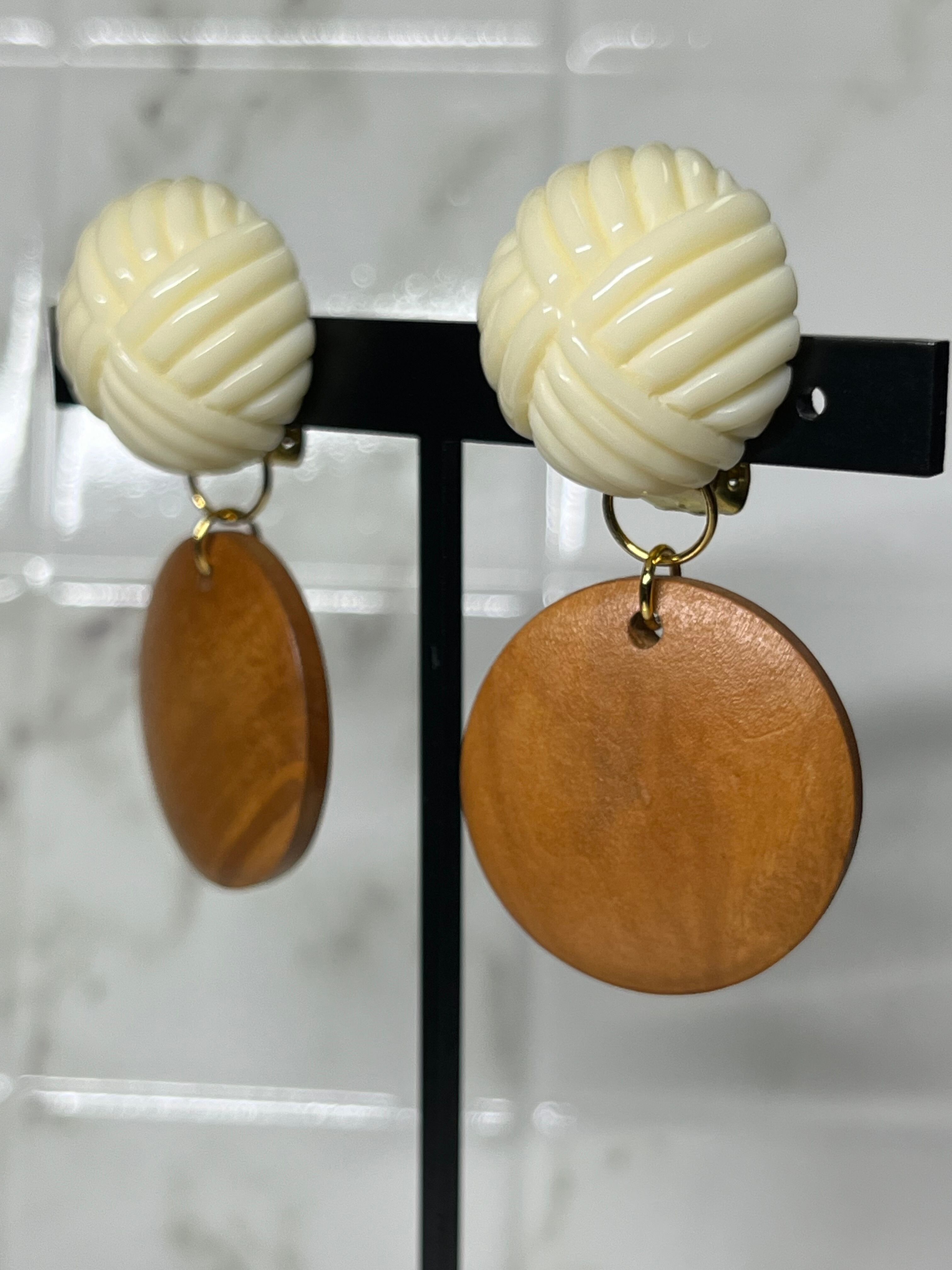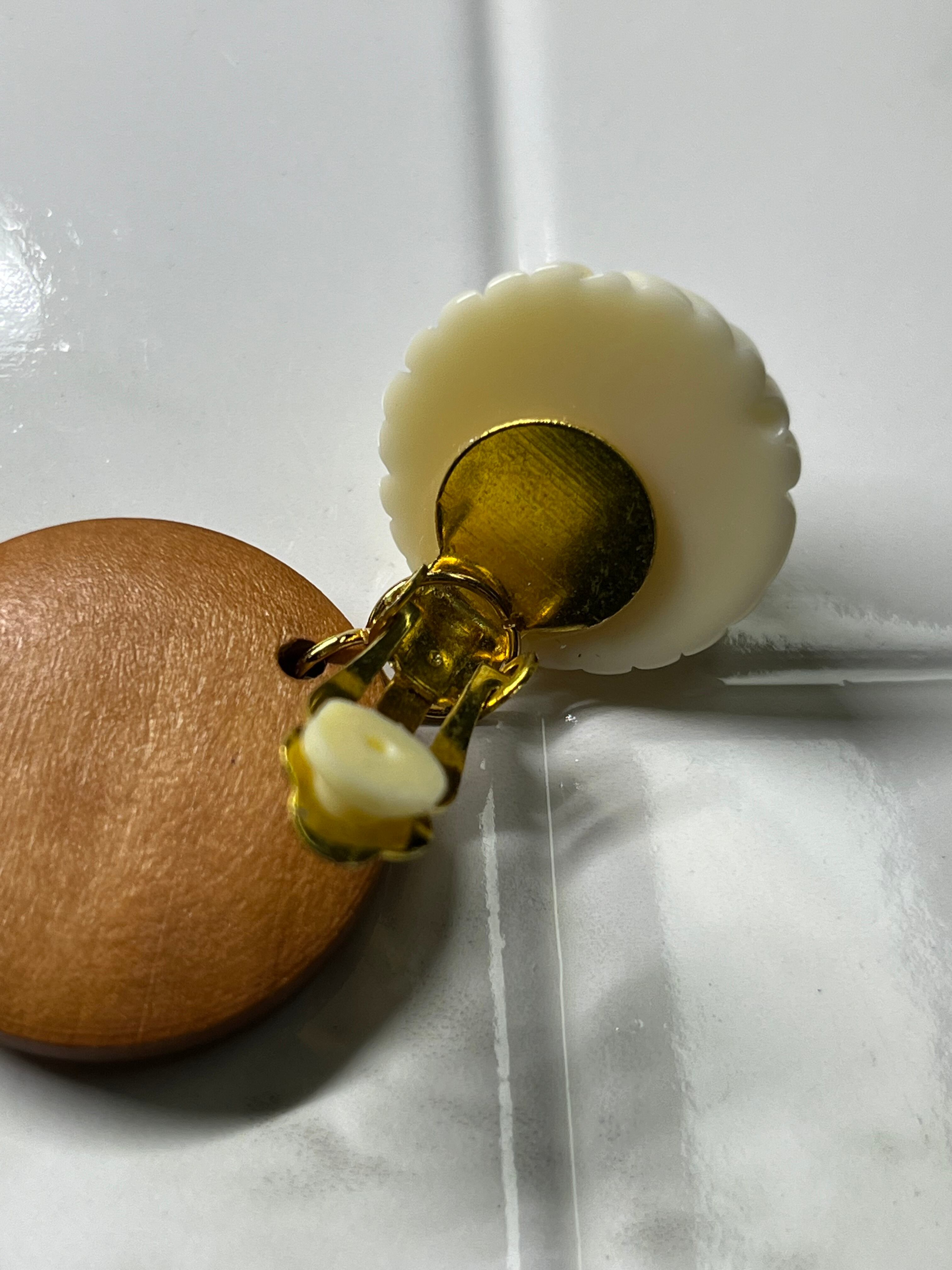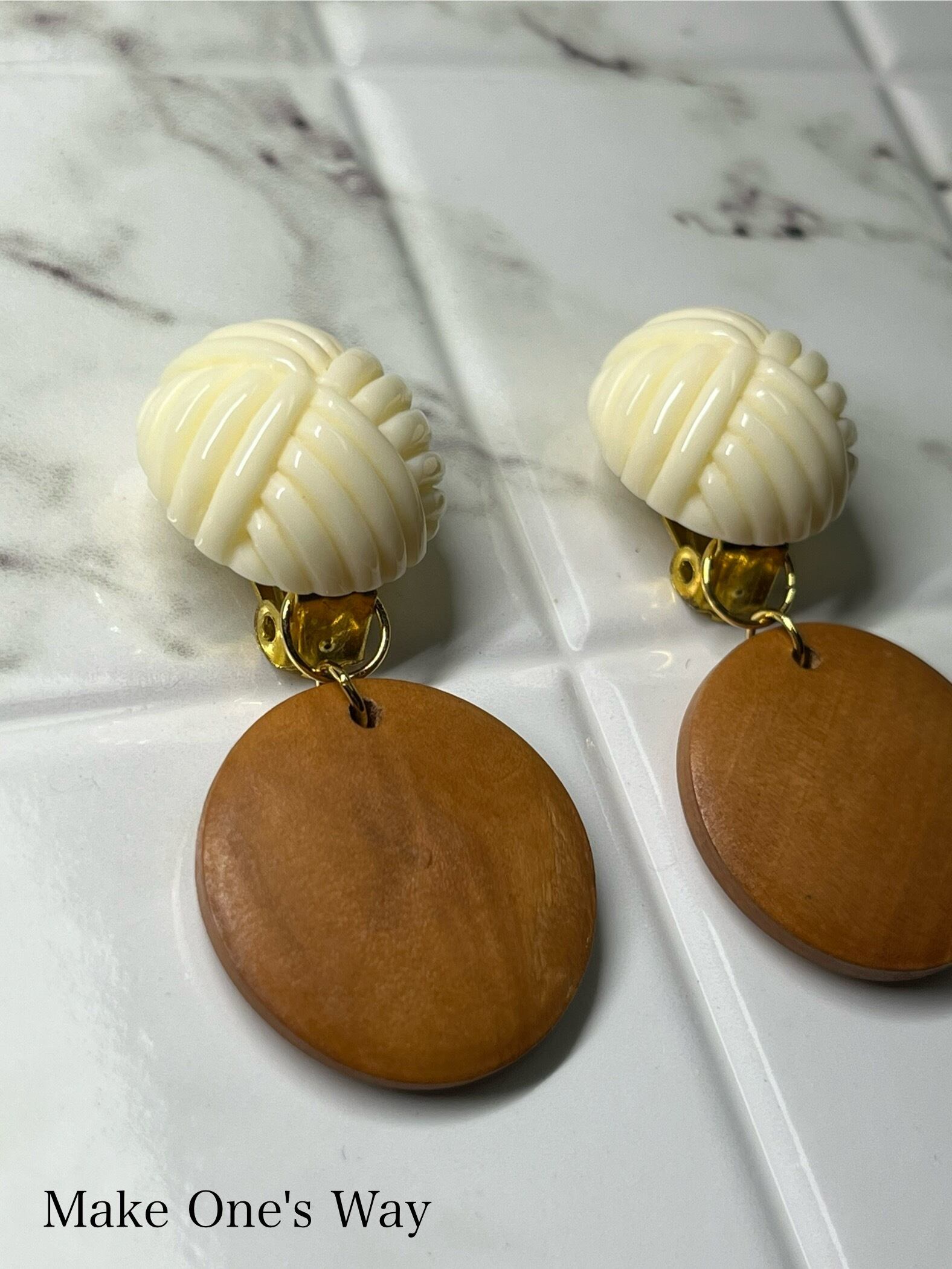 ◆天然素材の丸いウッドパーツを添えてほっこり感をプラス。