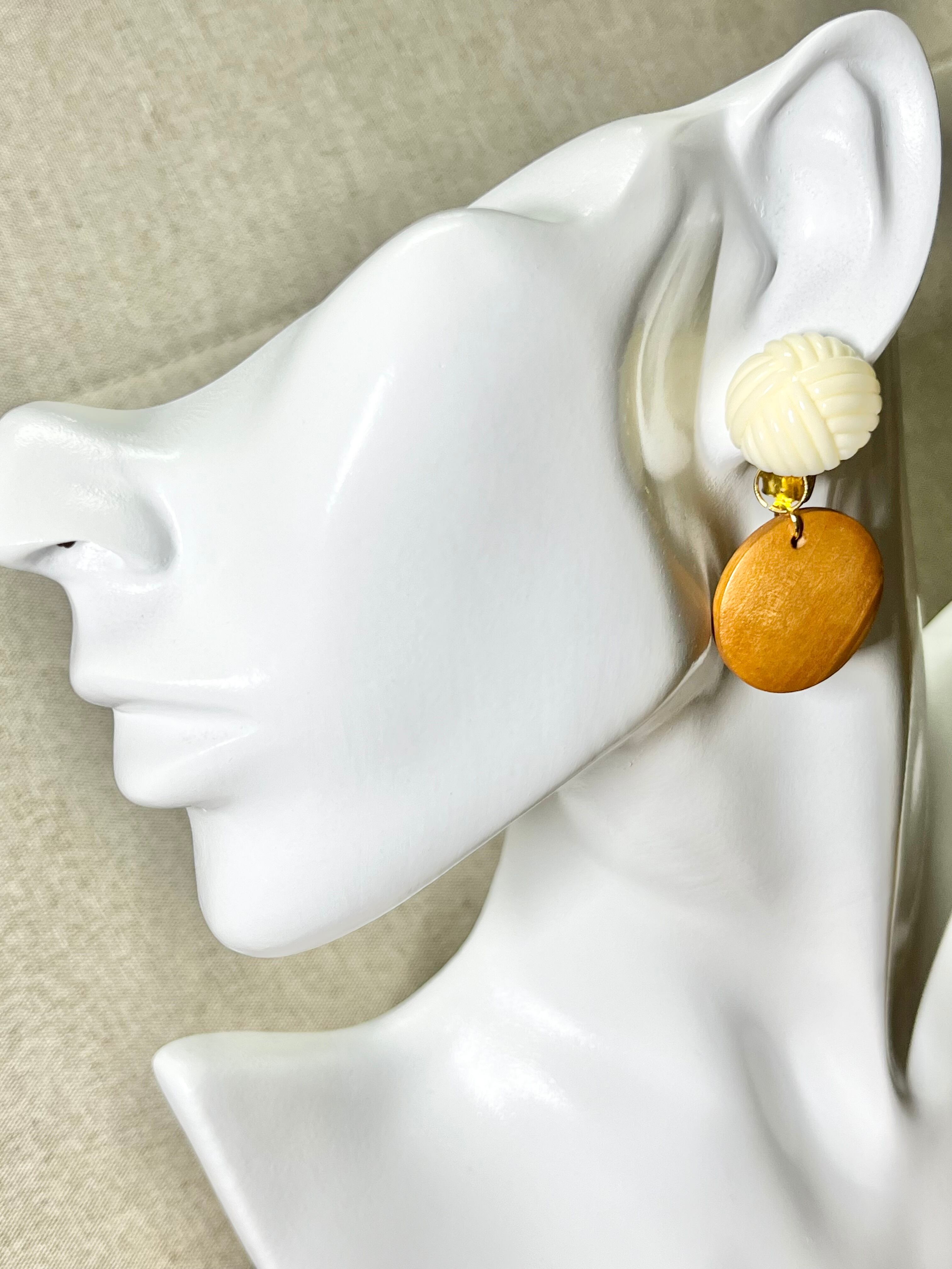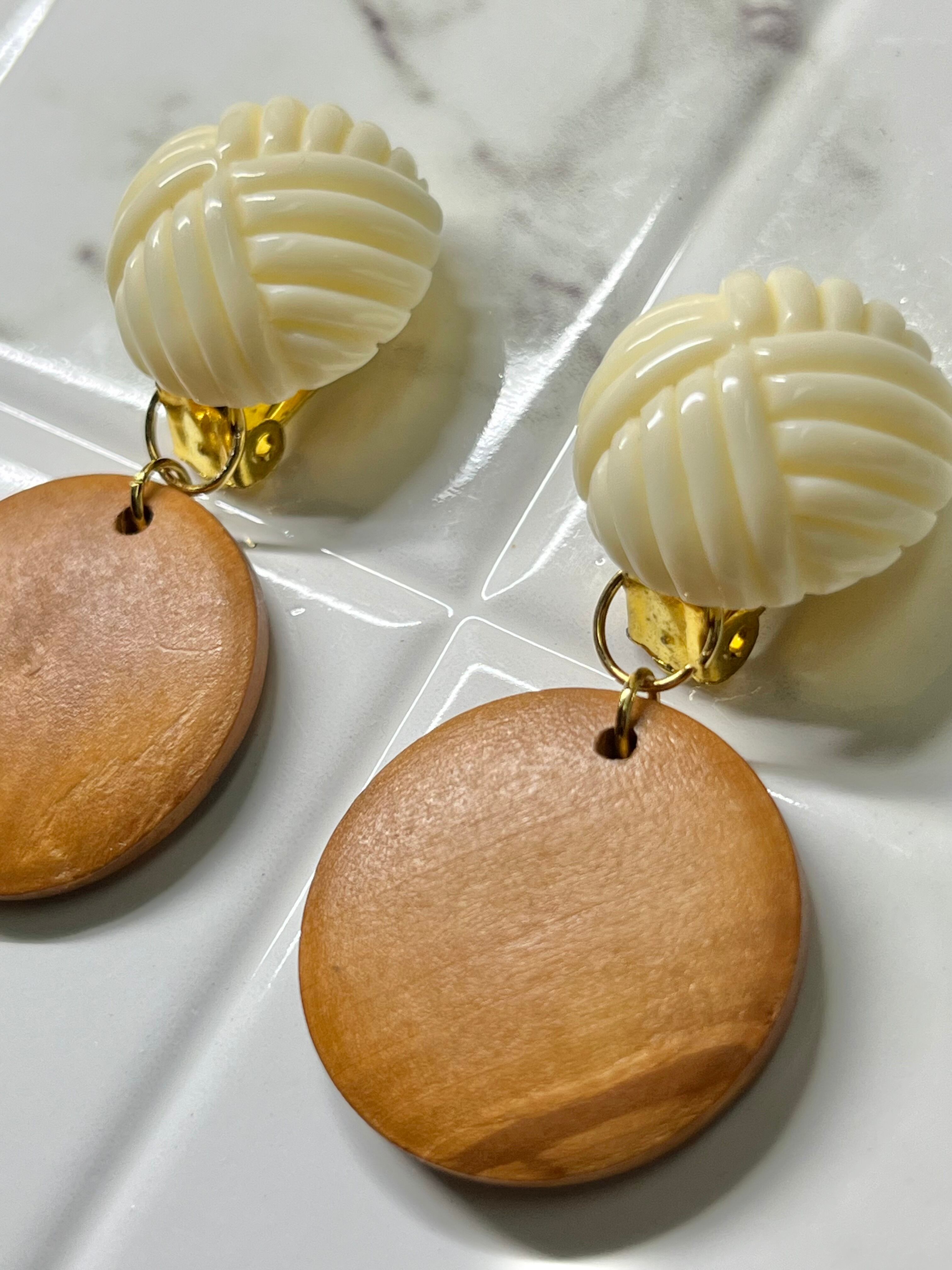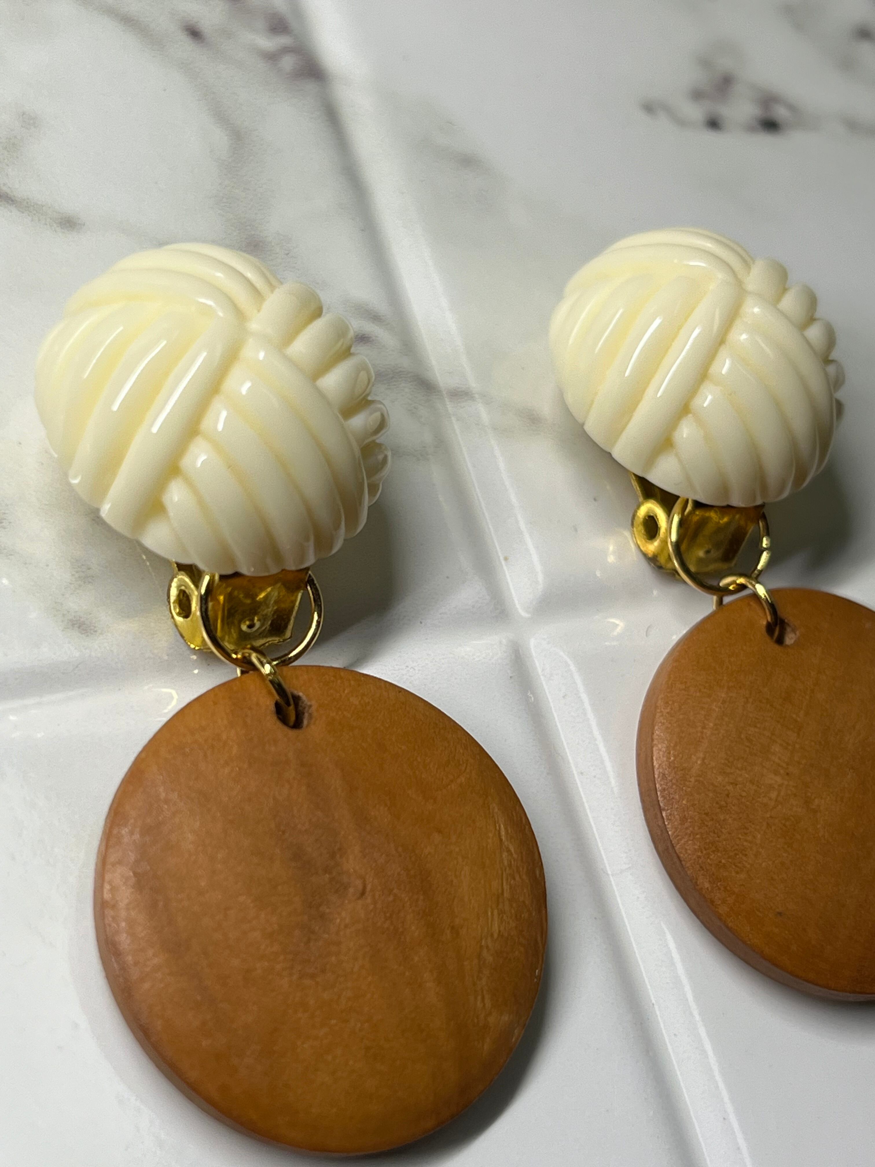 ◆天然素材の丸いウッドパーツを添えてほっこり感をプラス。