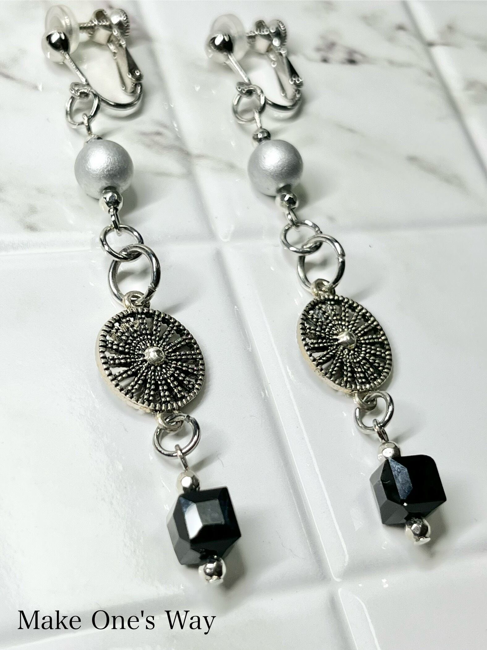 ◆黒いビーズが全体を引き締めてシルバーをより一層引き立てる。