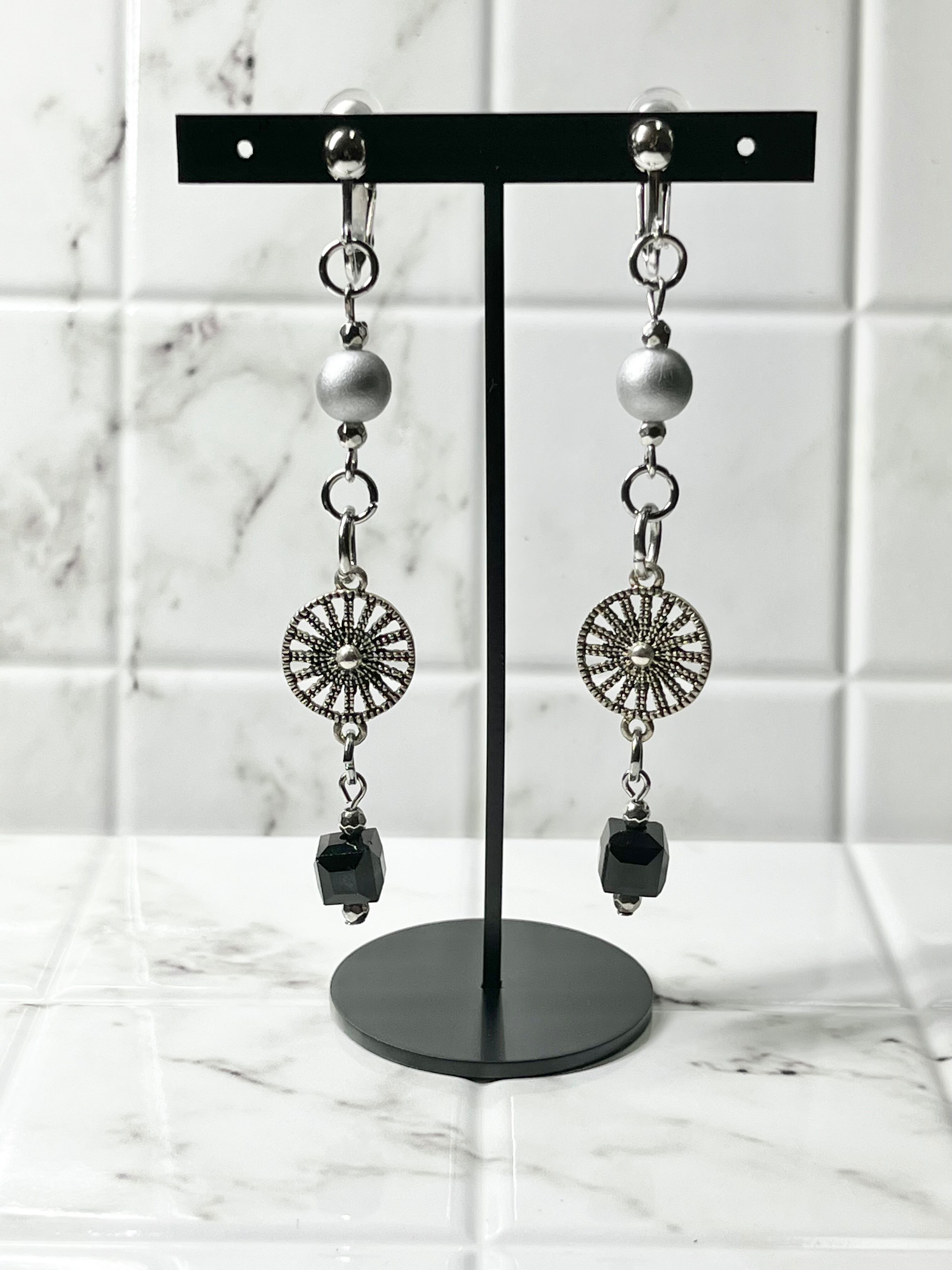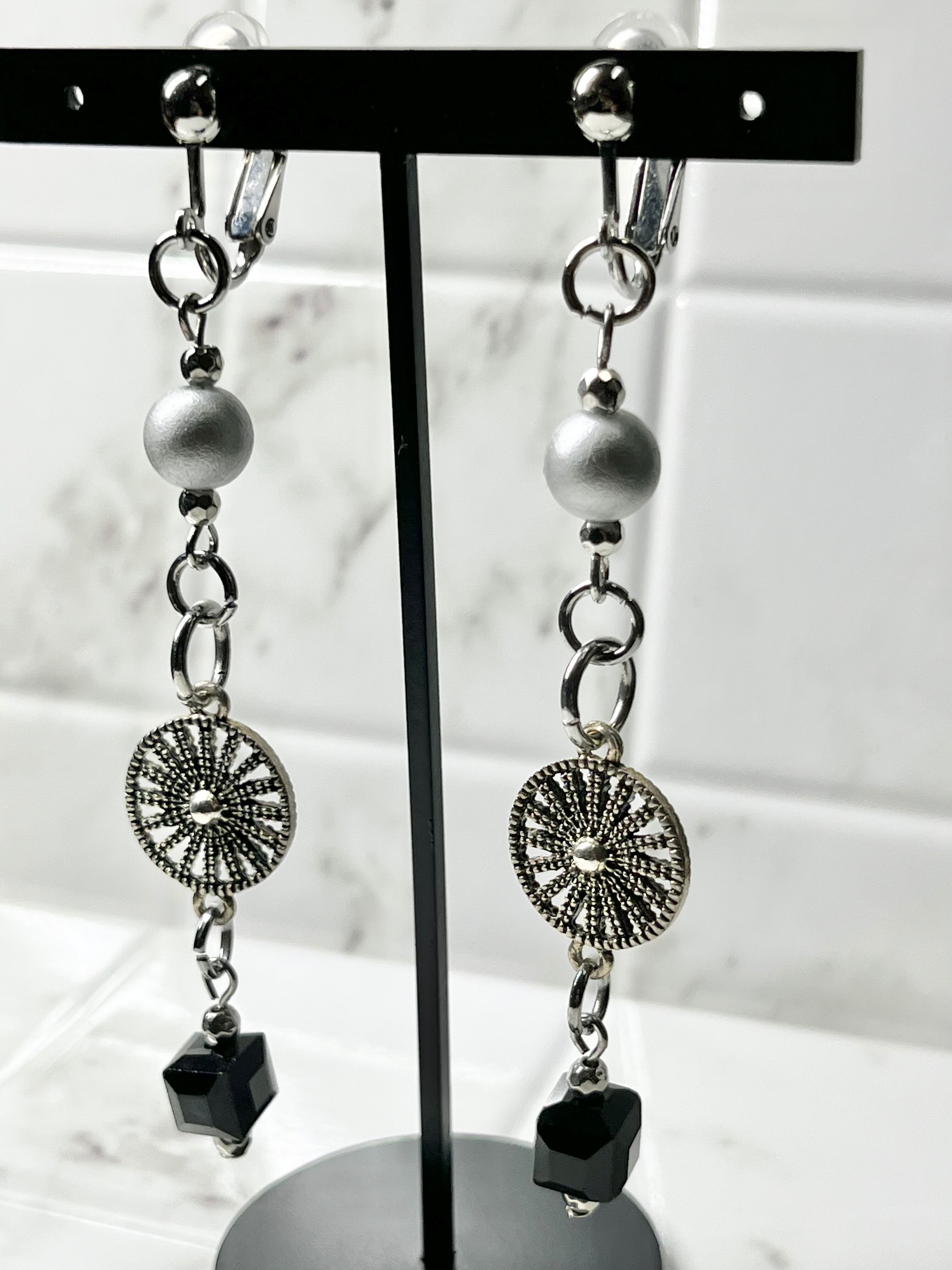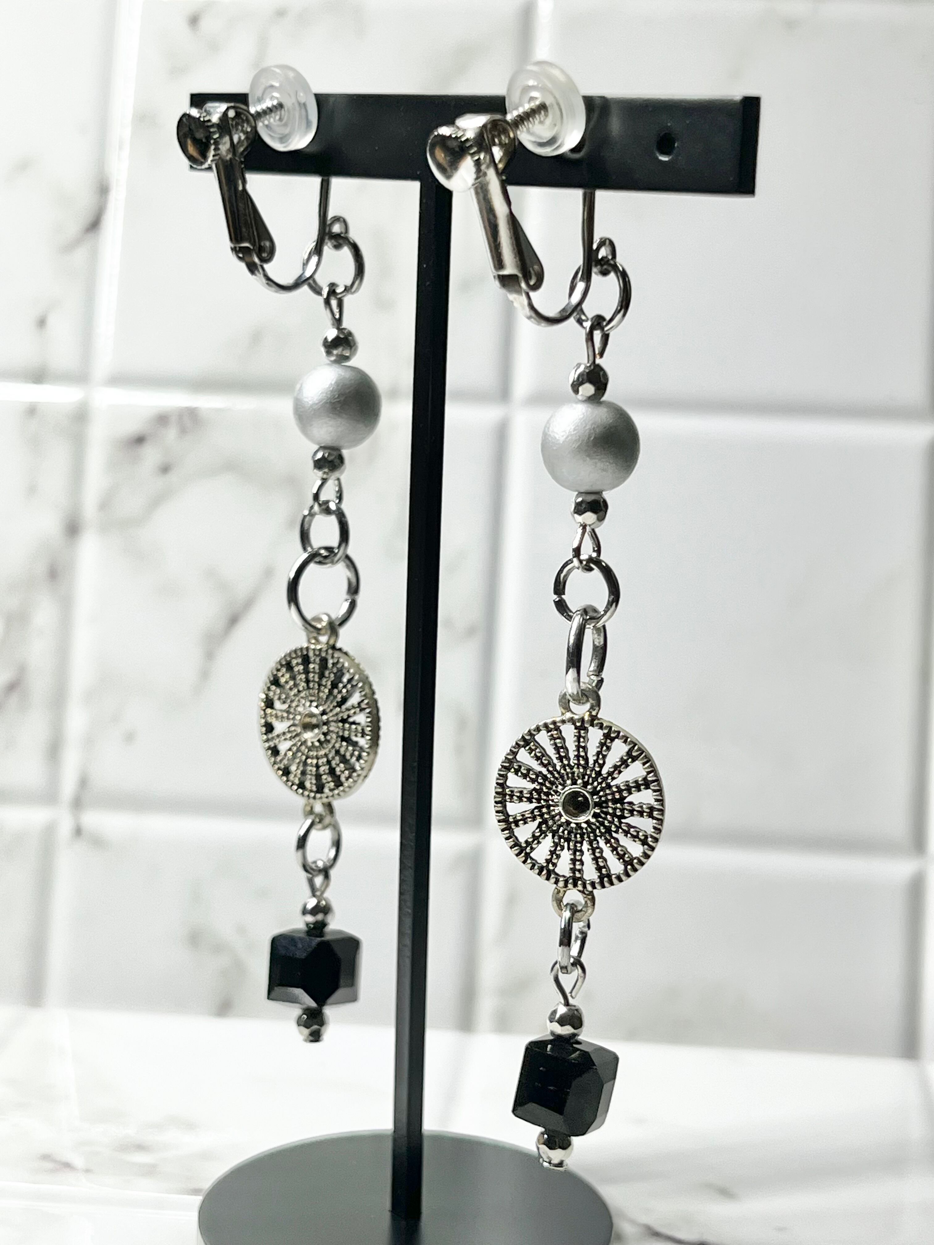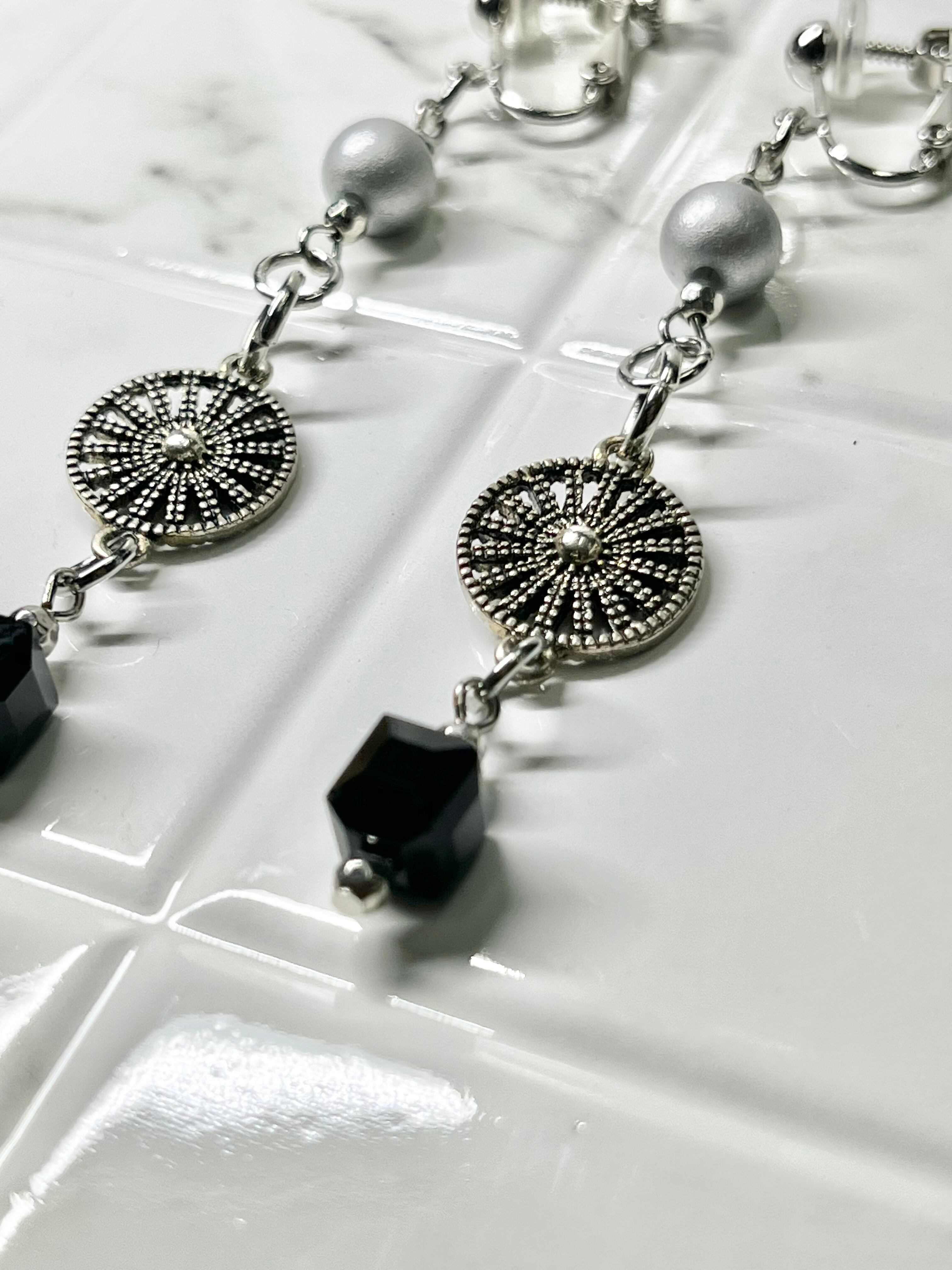 ◆シルバーがテーマカラーの凛とした輝きを放つイヤリング。