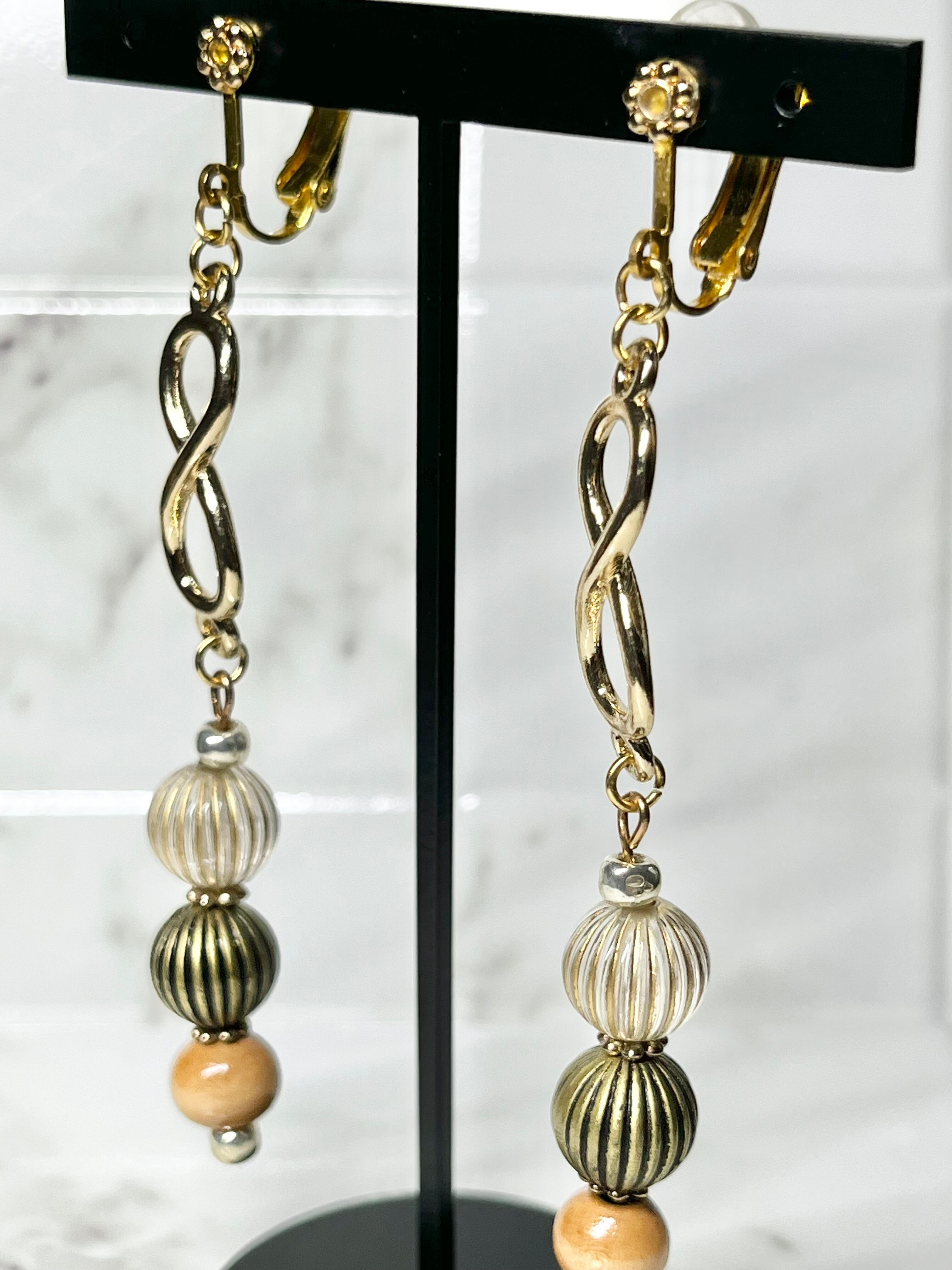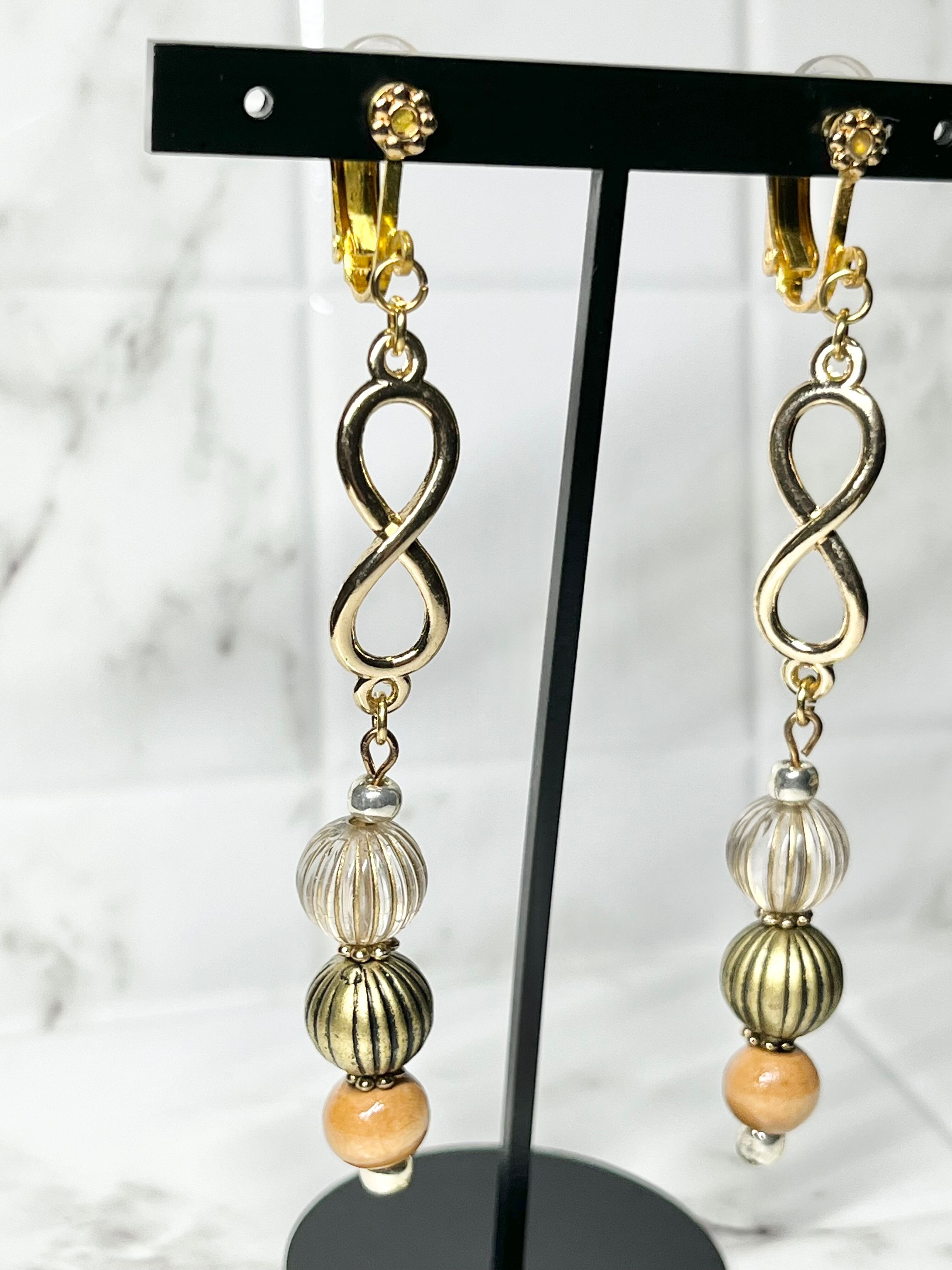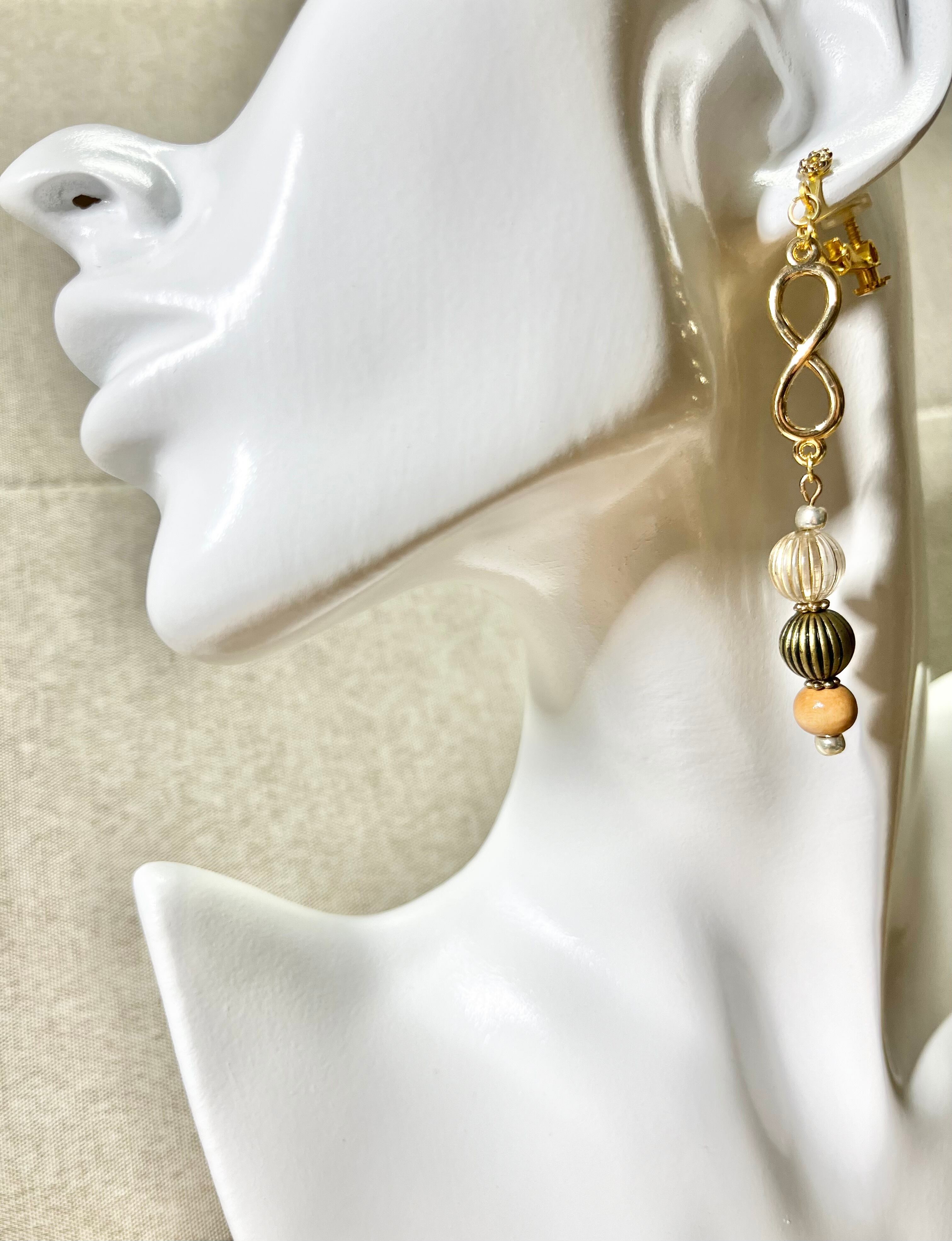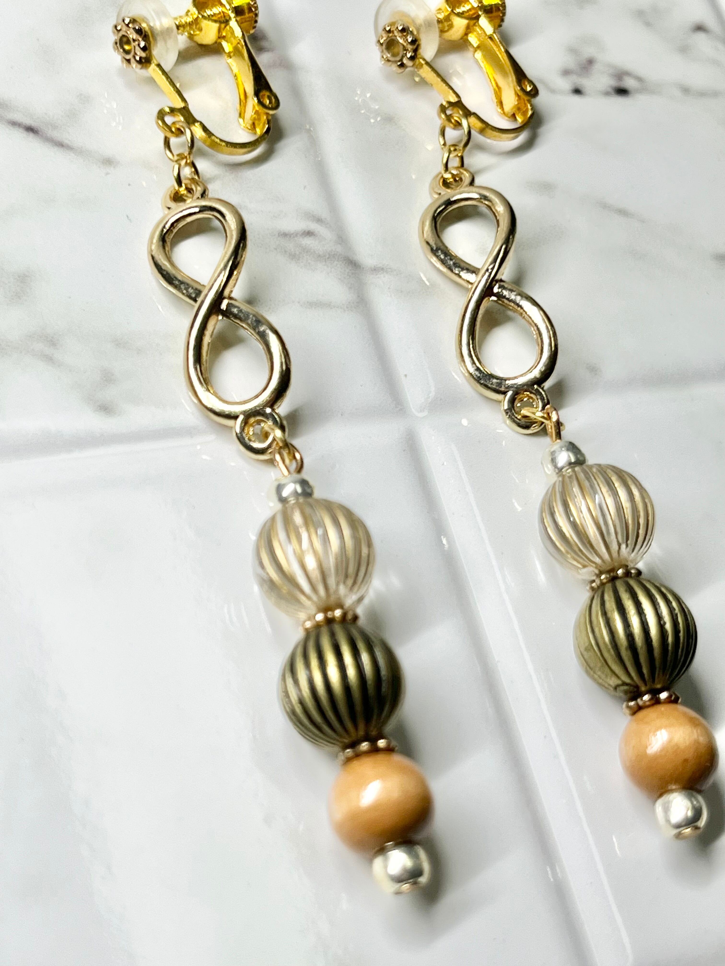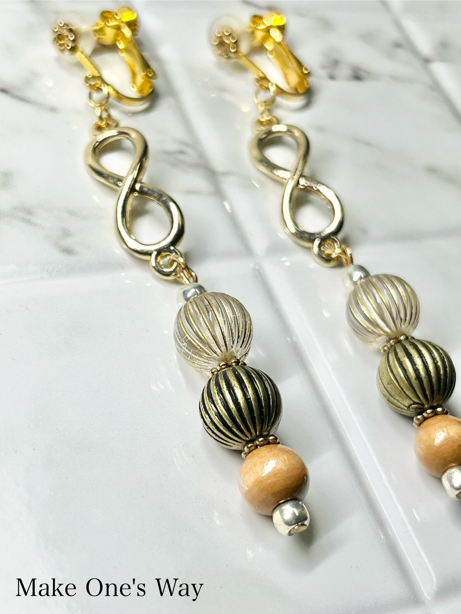 ◆無限の形のゴールドパーツの煌めきとコロンと丸いビーズの可愛らしさの組み合わせ。