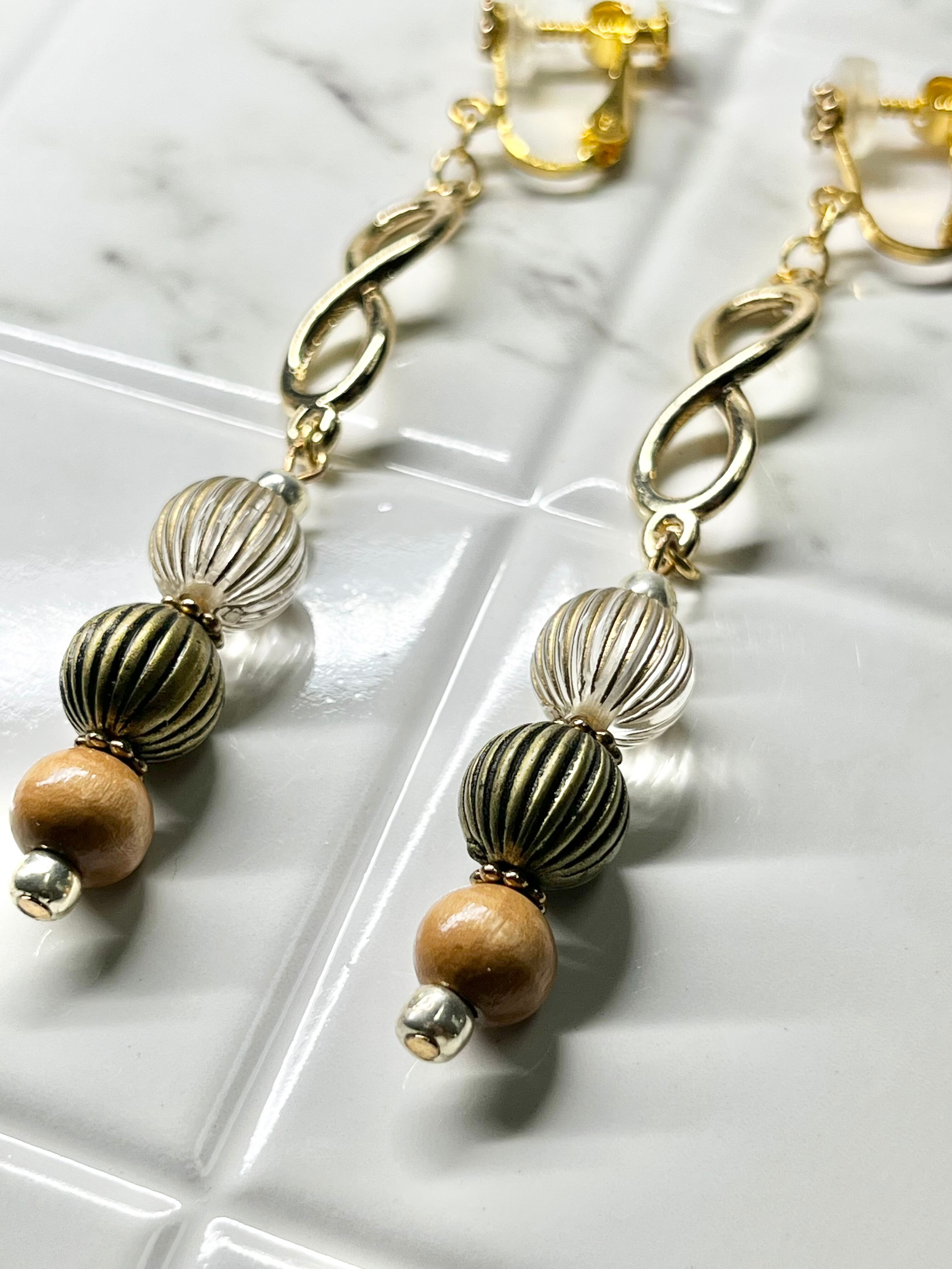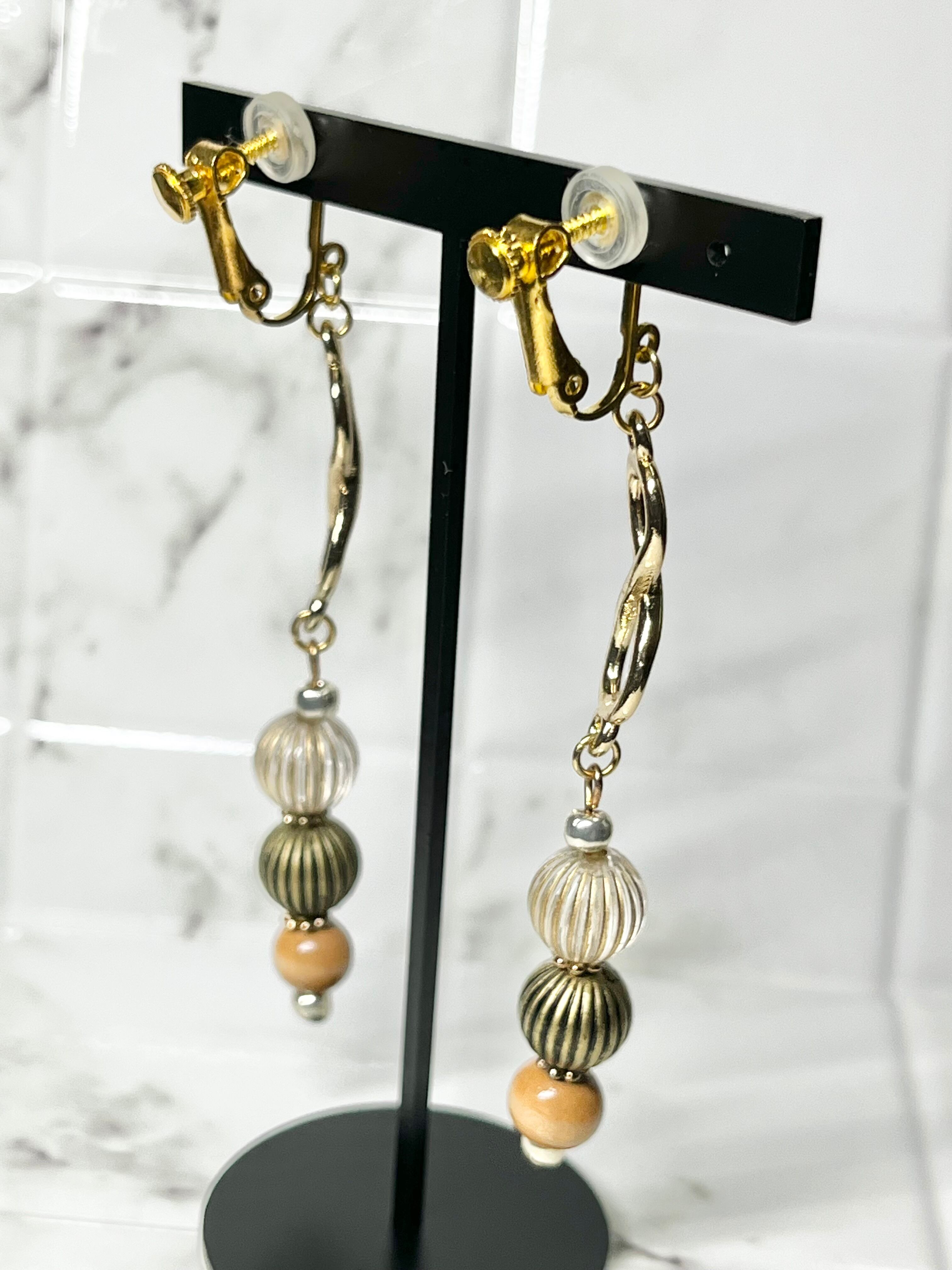 ◆ゴールド×ブラウンのグラデーションカラーでまとめたイヤリング。
