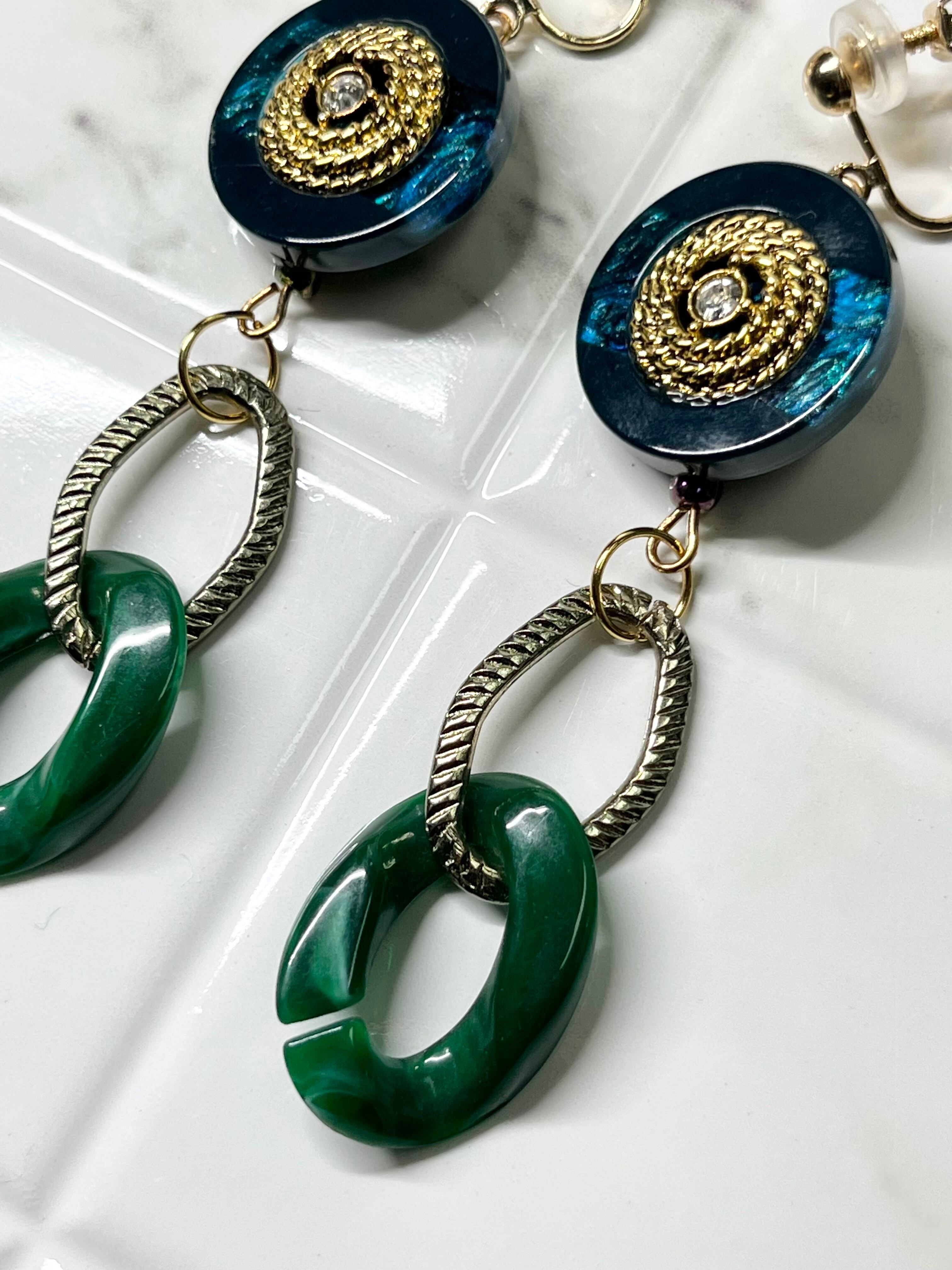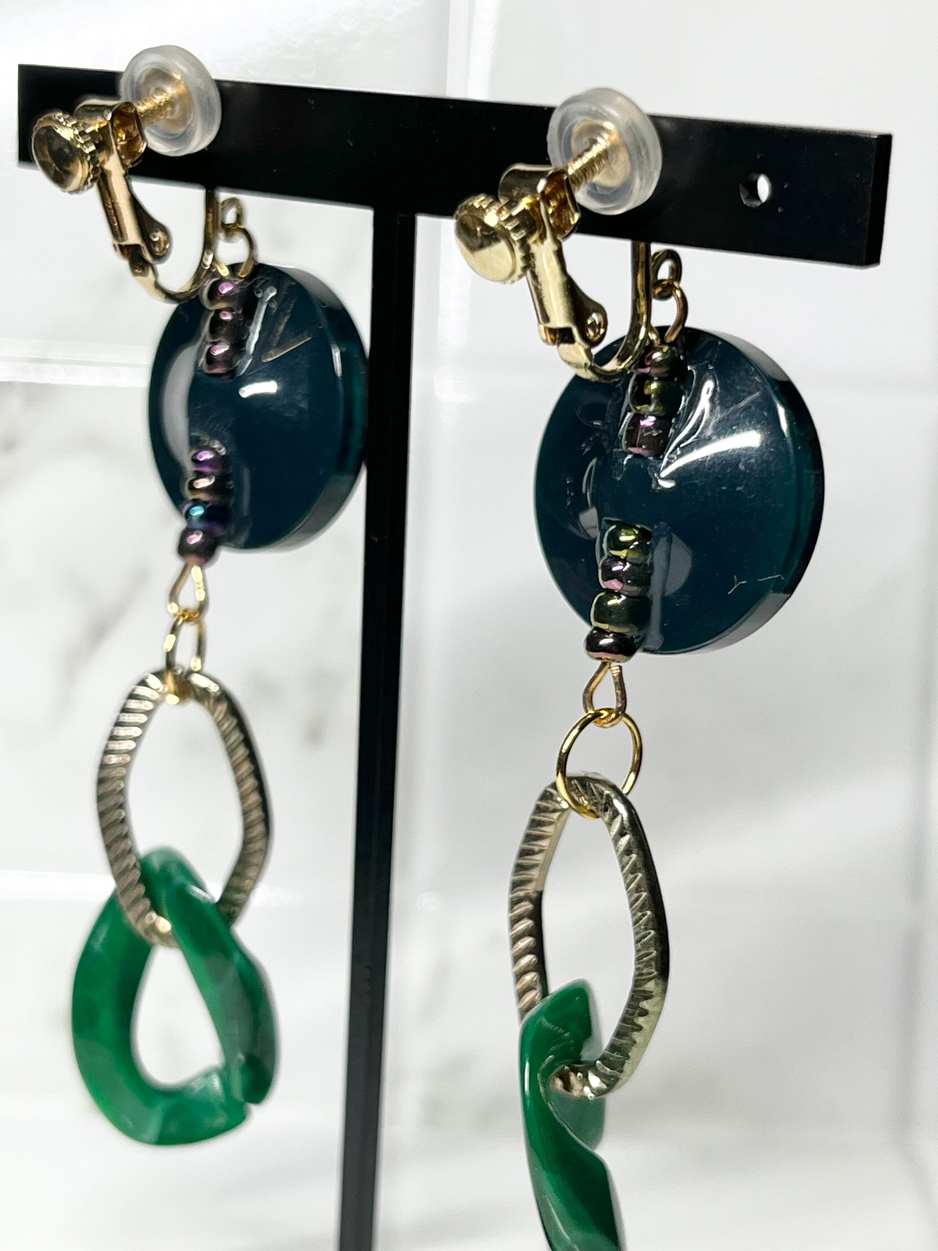 ◆グリーンとゴールドがテーマカラーのイヤリング。