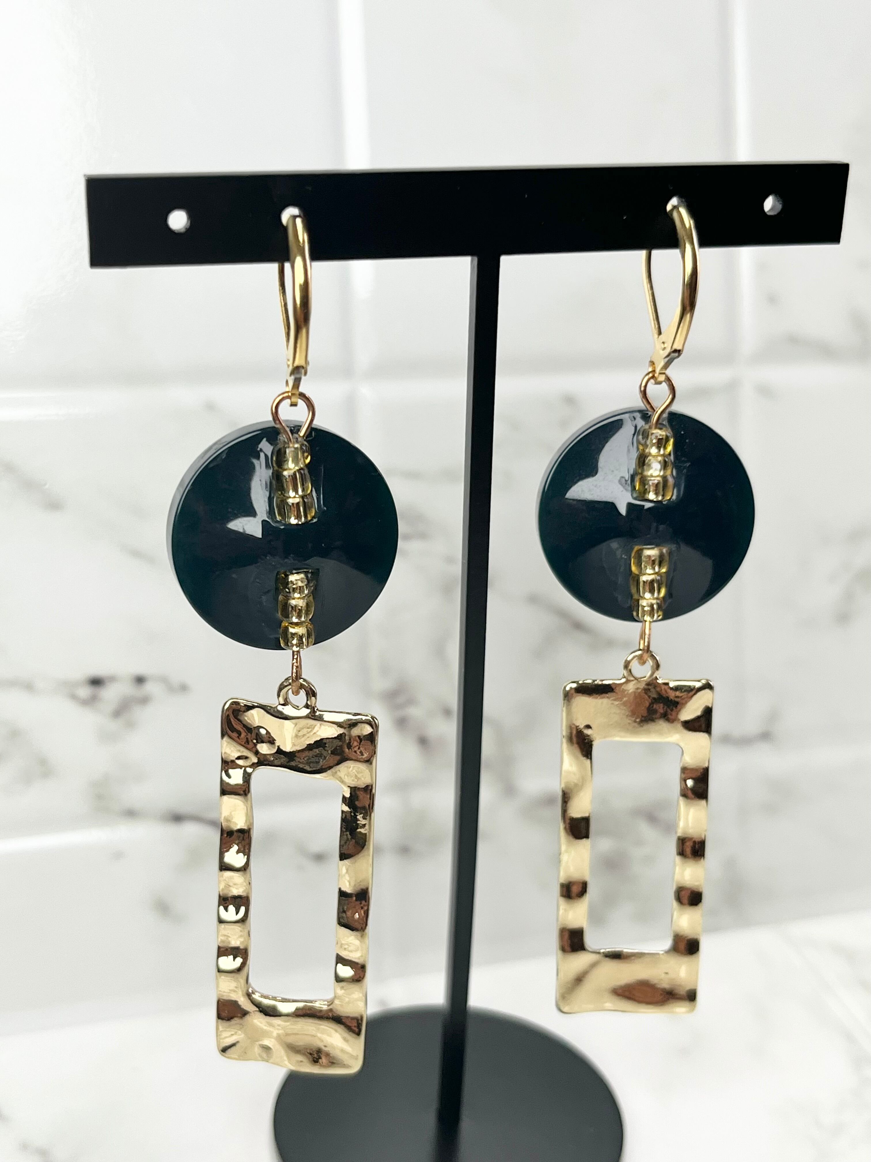 翠色の深みに魅了されるピアス。深緑と高級感溢れるゴールドが調和し、クールでゴージャスな印象に。四角いフレームのゴールドパーツとの組み合わせが、シンプルながらもクールで華やかな雰囲気を演出します。装着部分は、キャッチの無いタイプで着脱がしやすく、お手軽にお使いいただけます。日常使いからパーティーシーンまで幅広いシーンで活躍すること間違いなし。あなたの魅力をさらに際立たせてくれます。是非、このピアスで日々に彩りを添えてください。