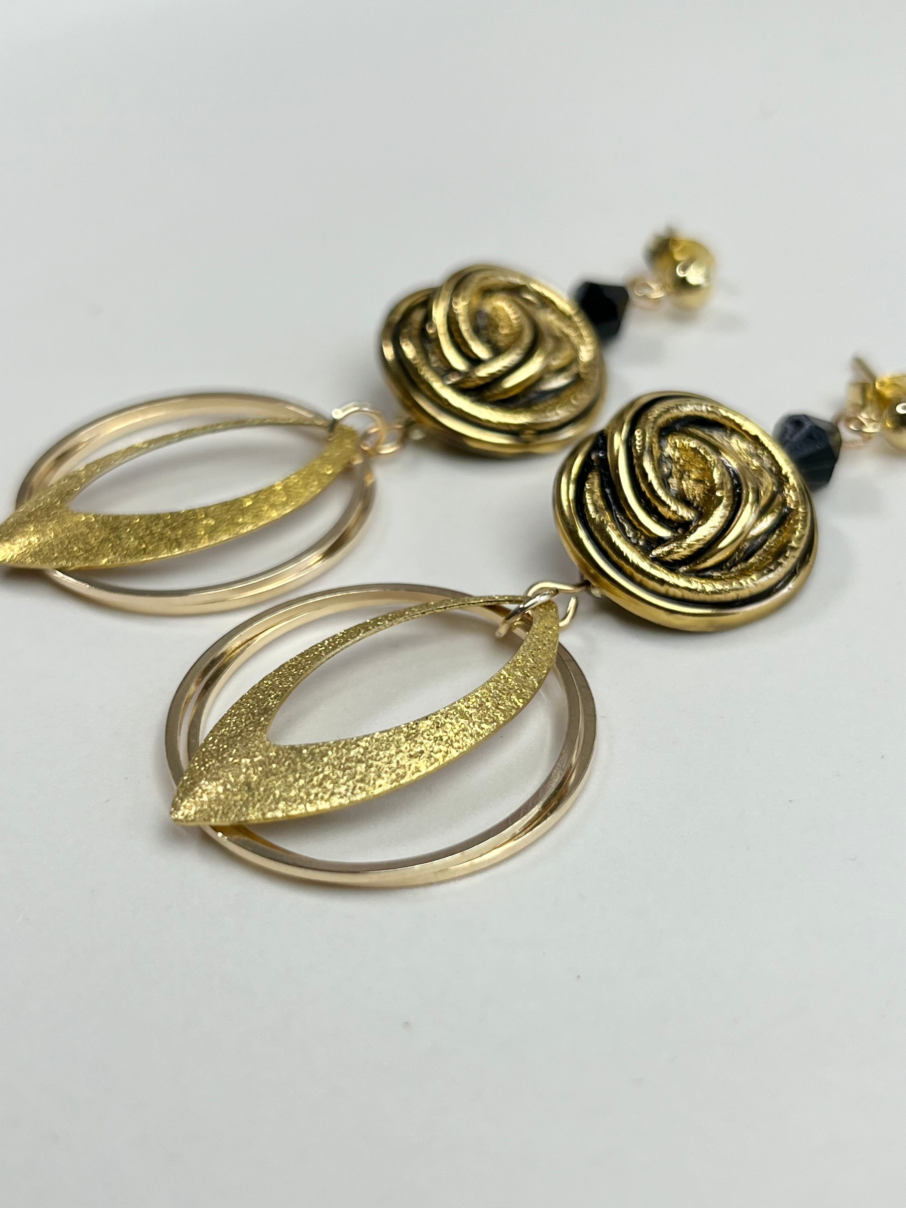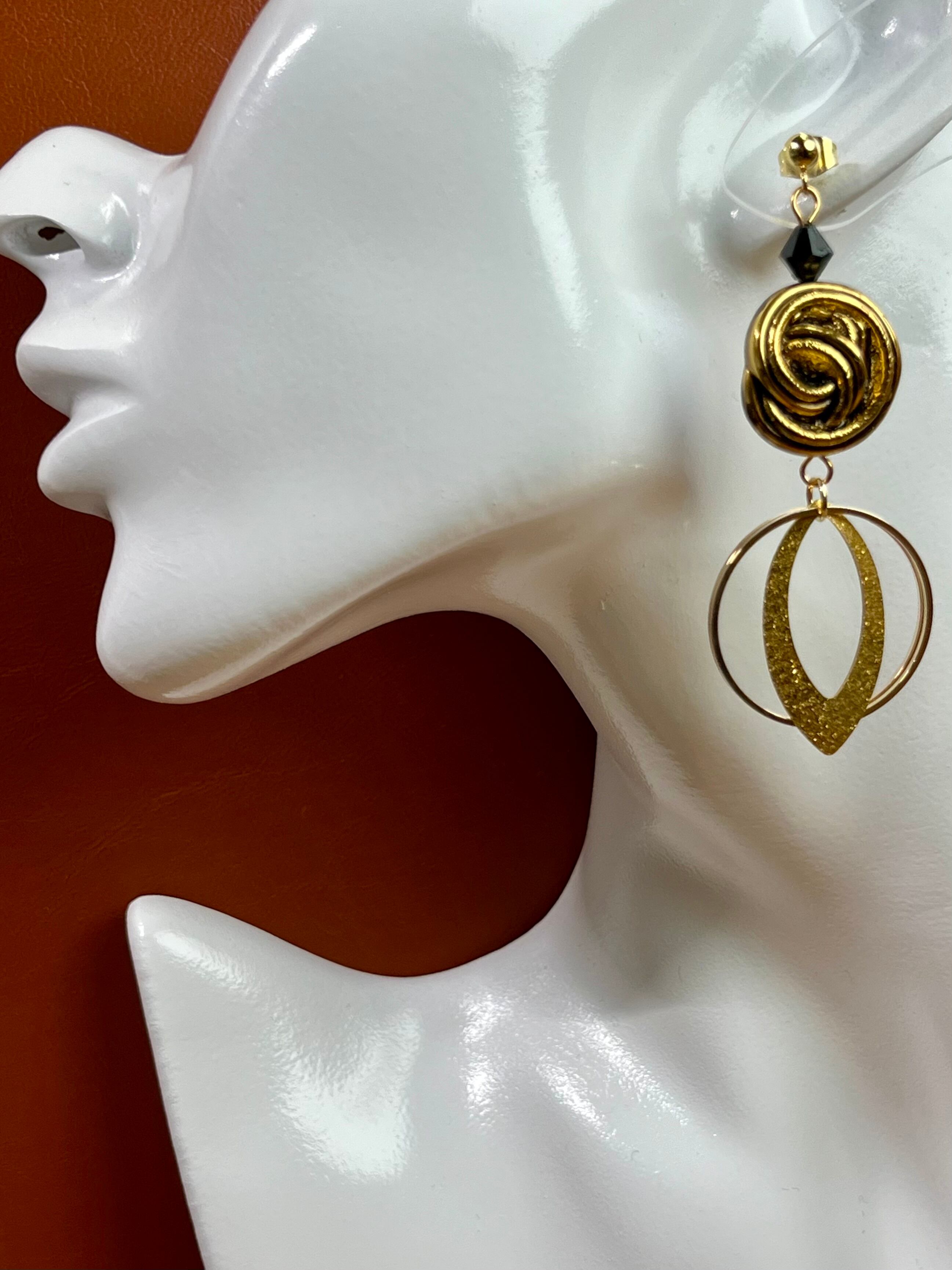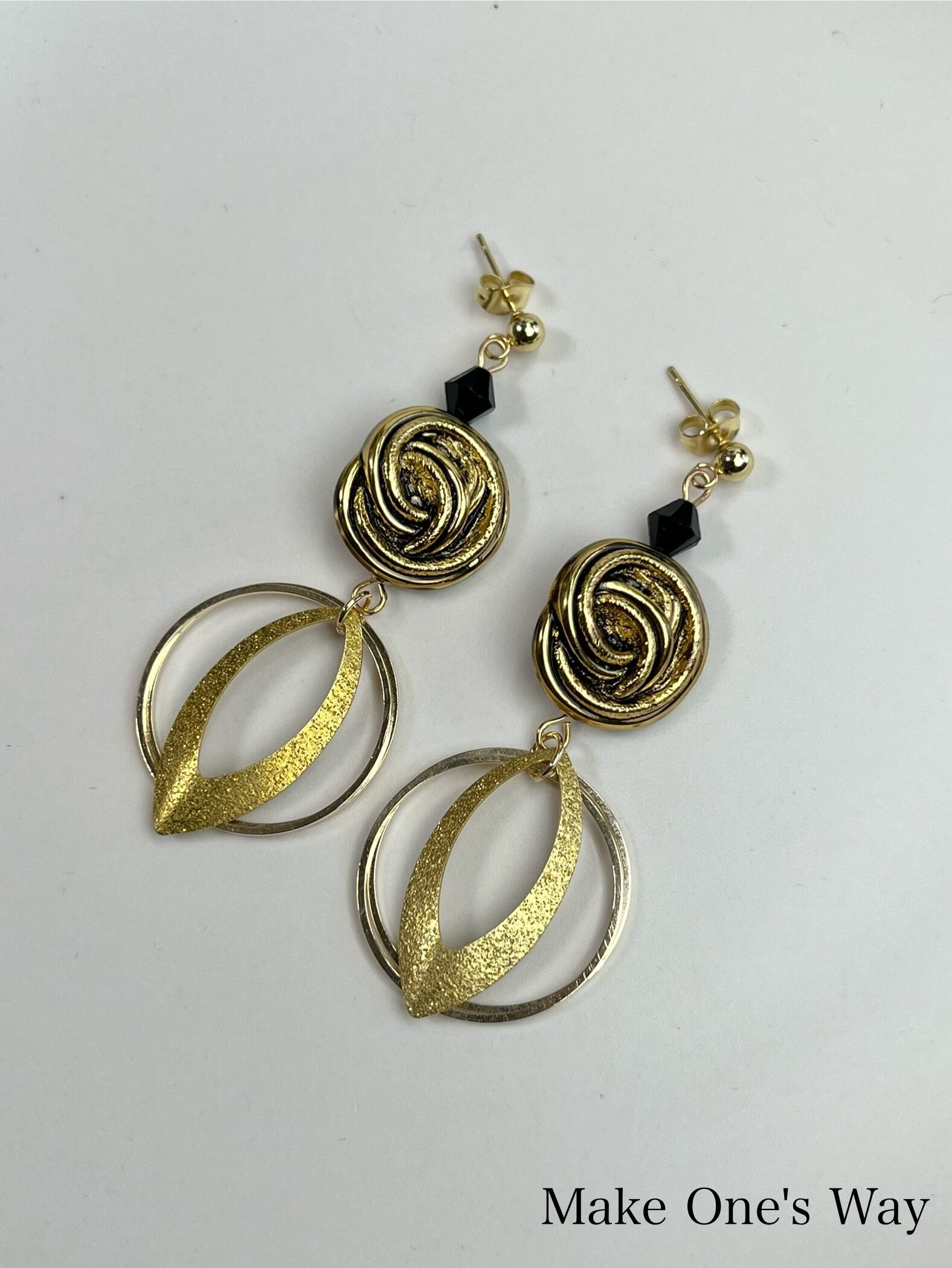 ◆ゴールドカラーでまとめたアンティーク調のレトロなボタンとリングパーツ。