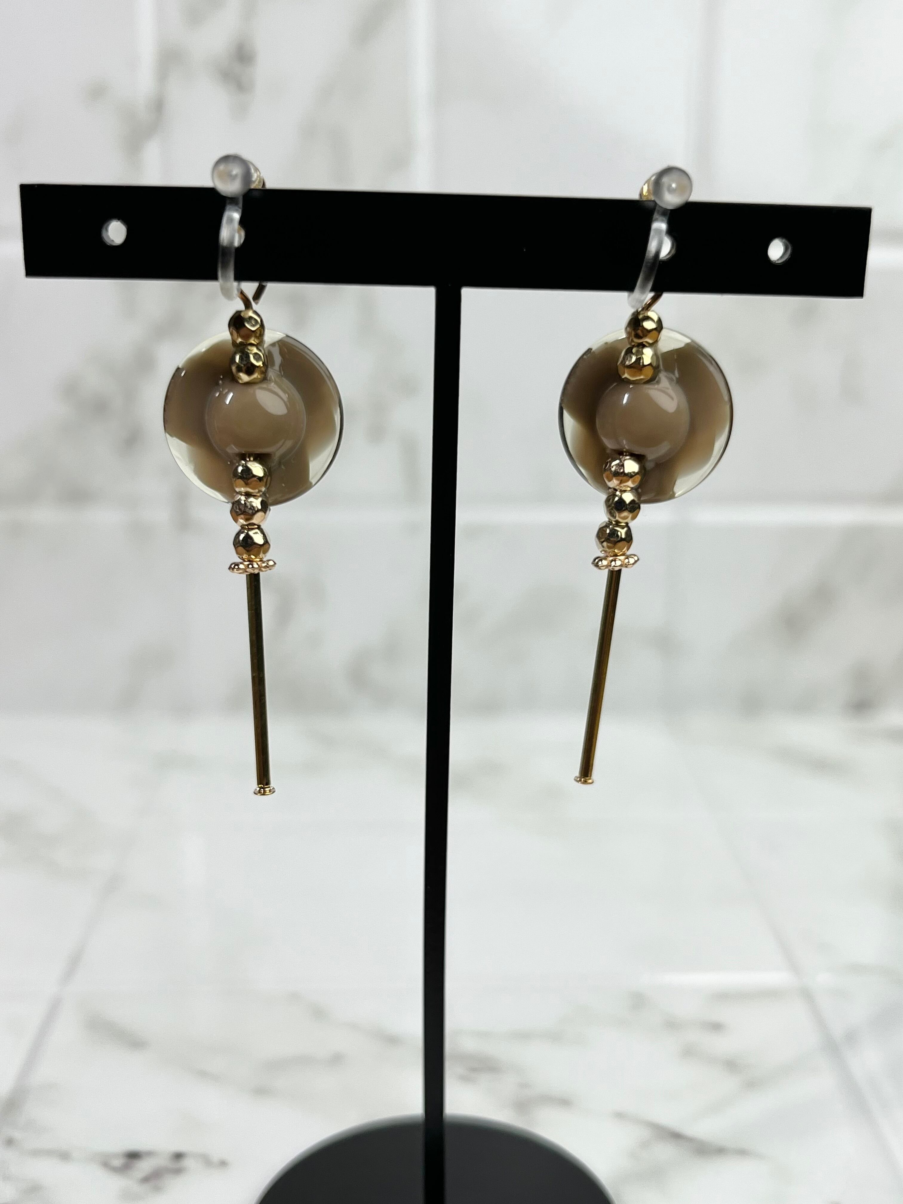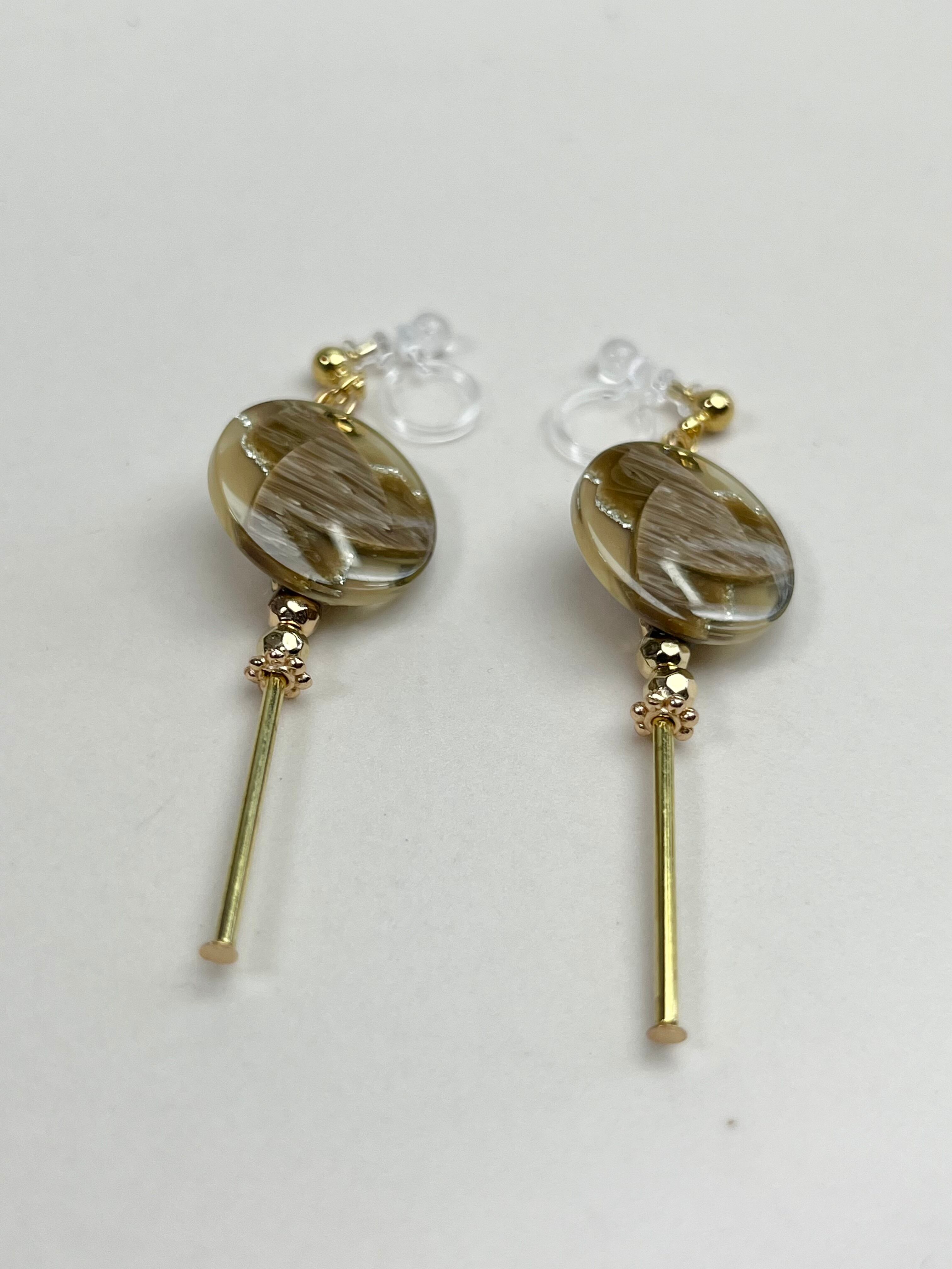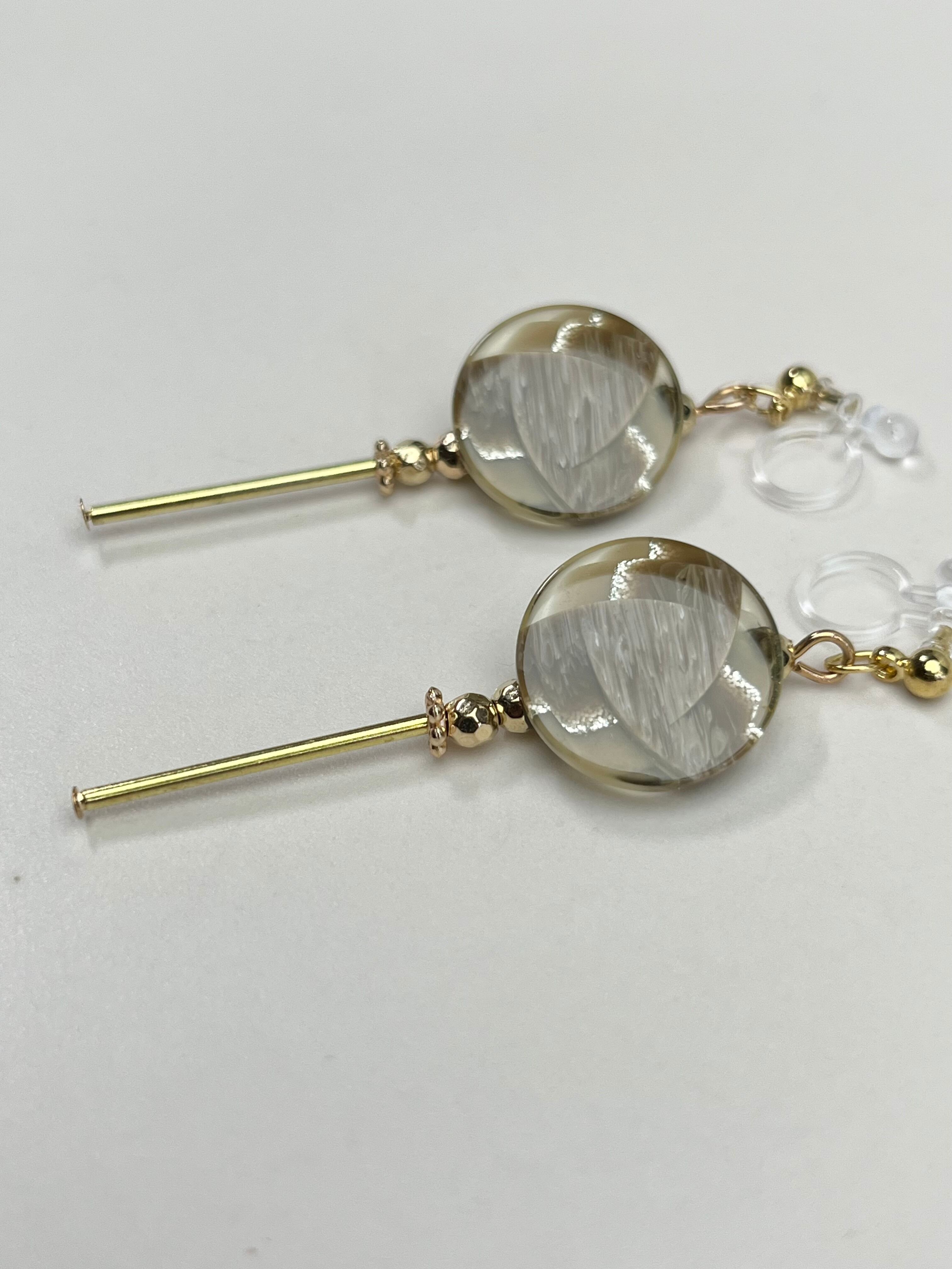 ◆レトロで透明感のあるボタンが主役のイヤリング。