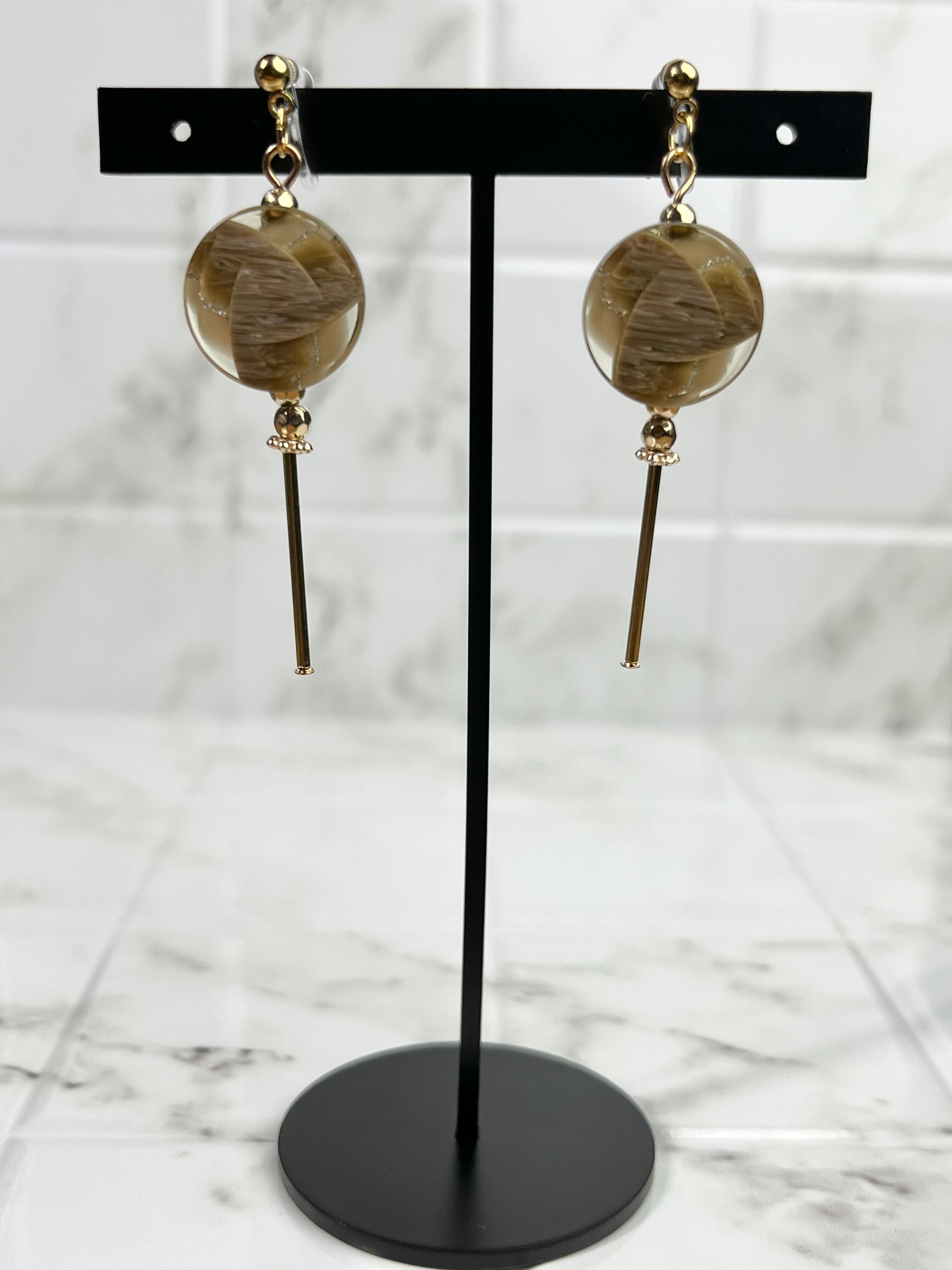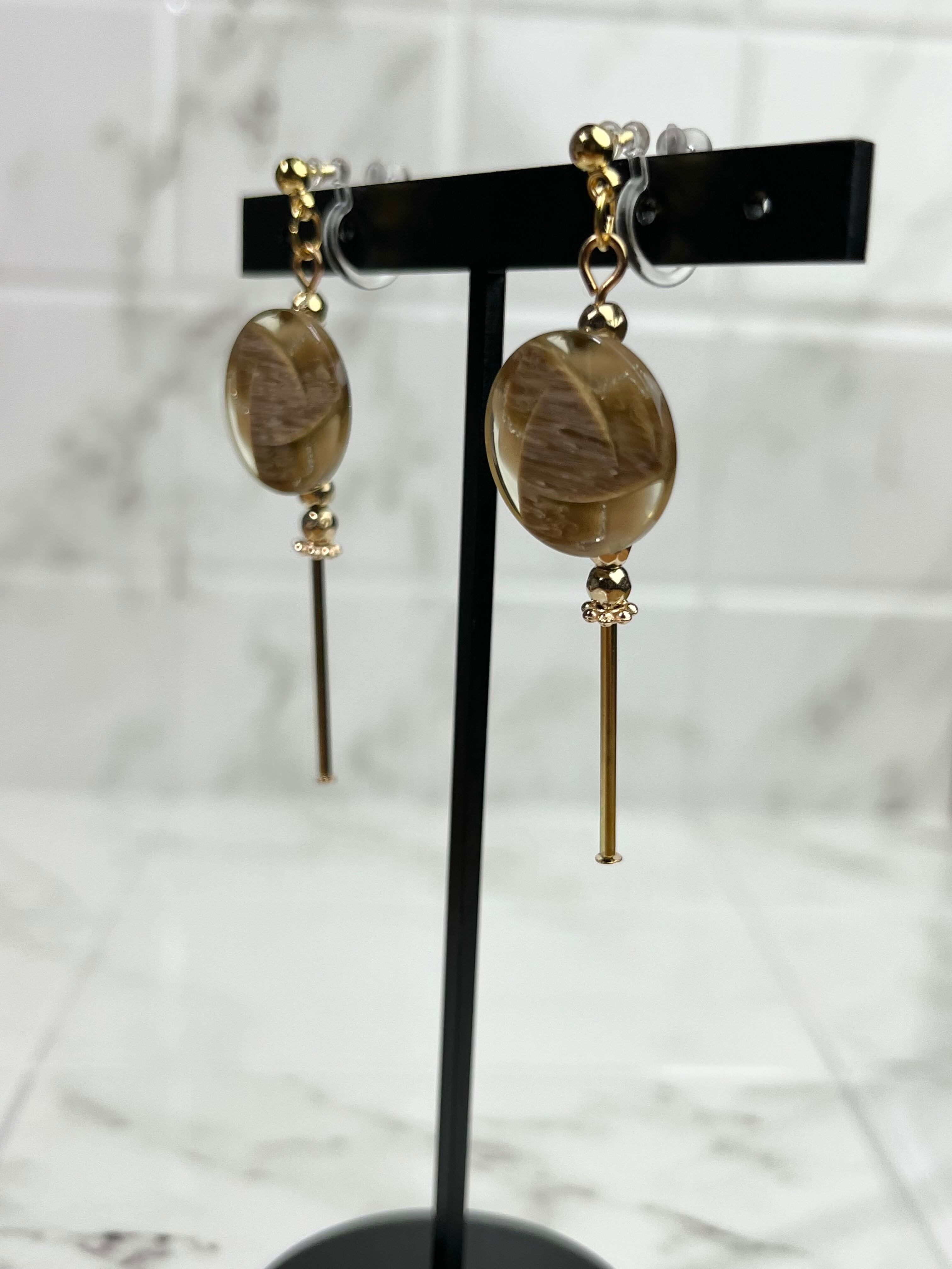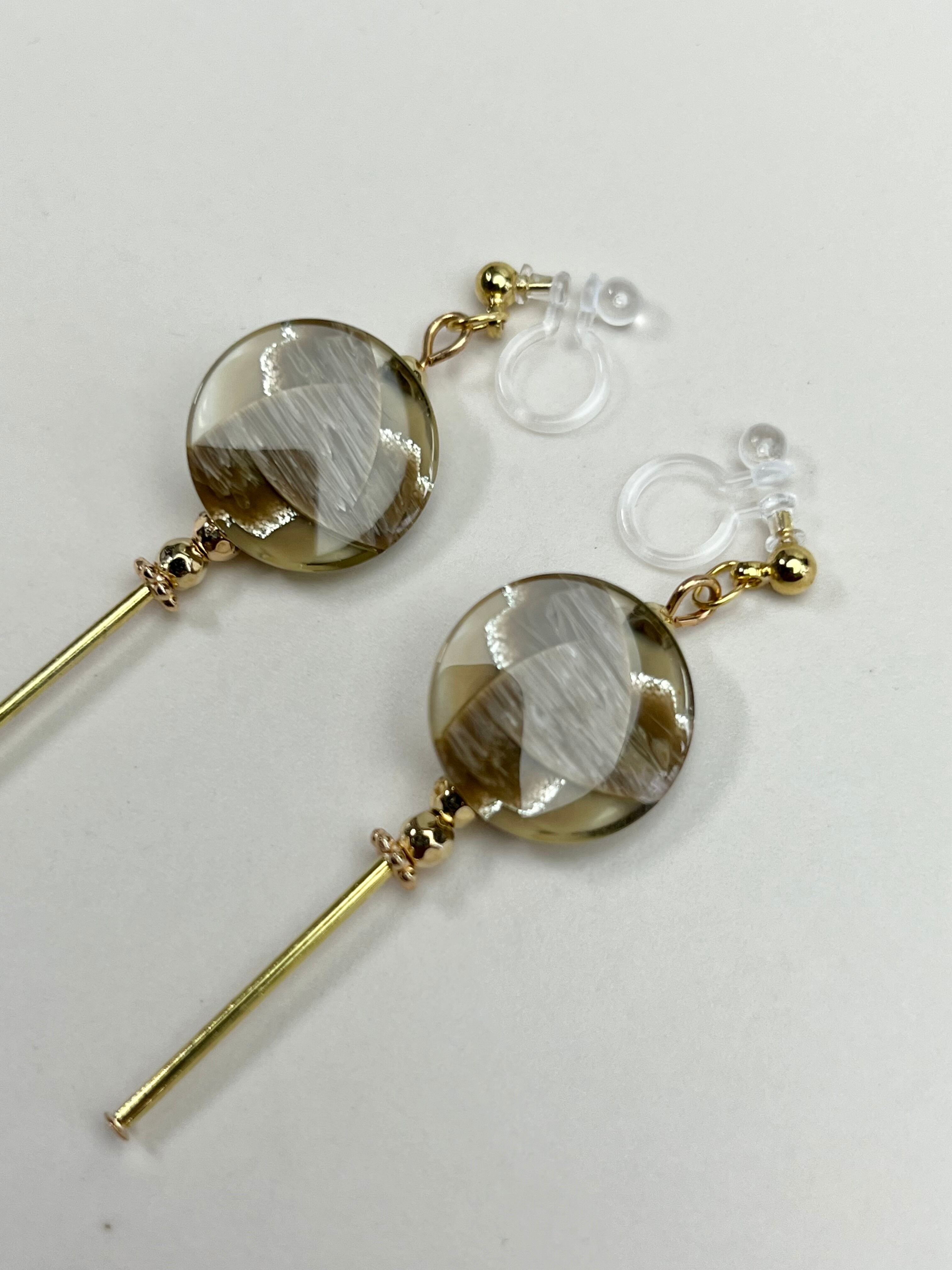 ◆レトロで透明感のあるボタンが主役のイヤリング。