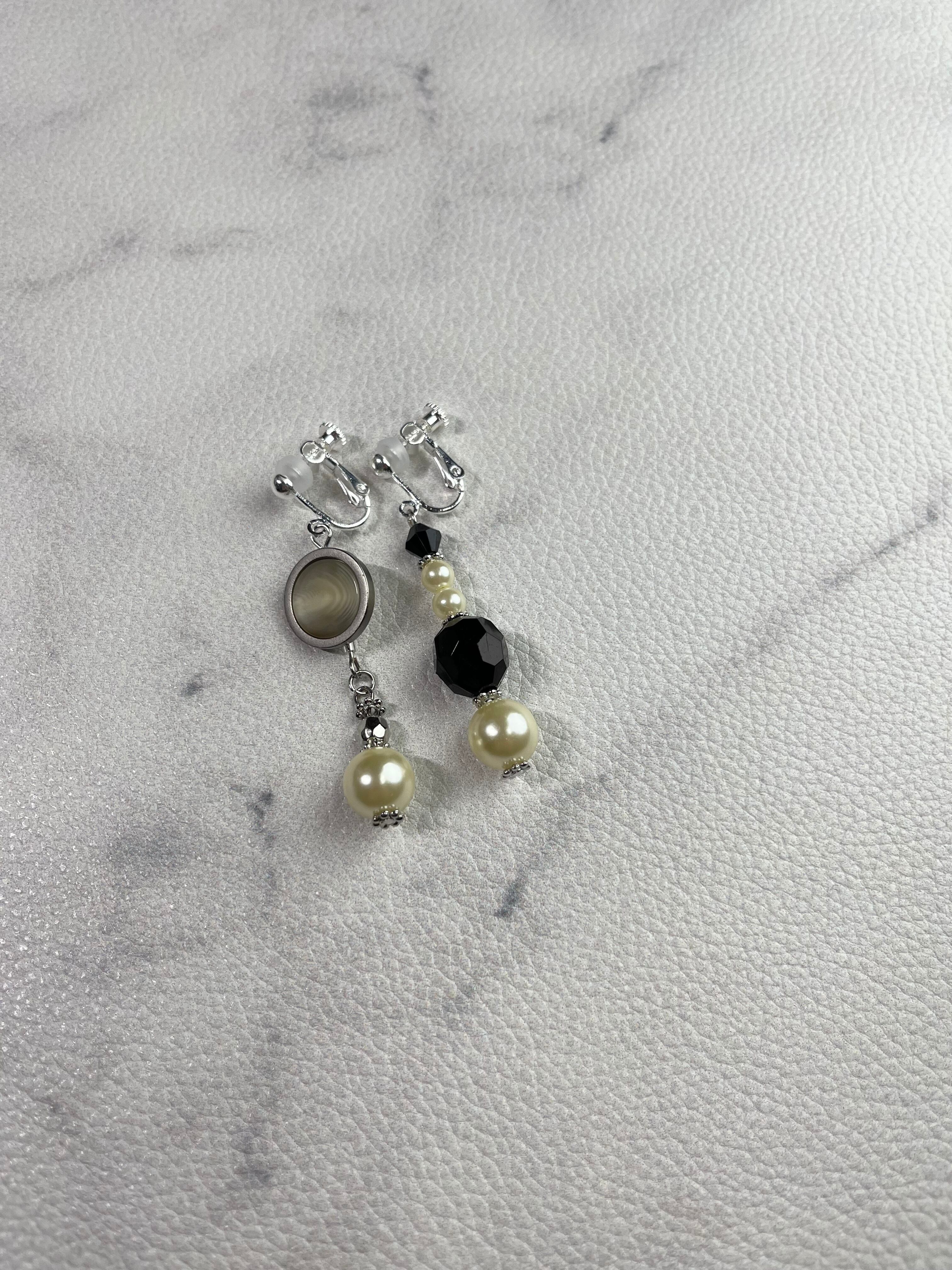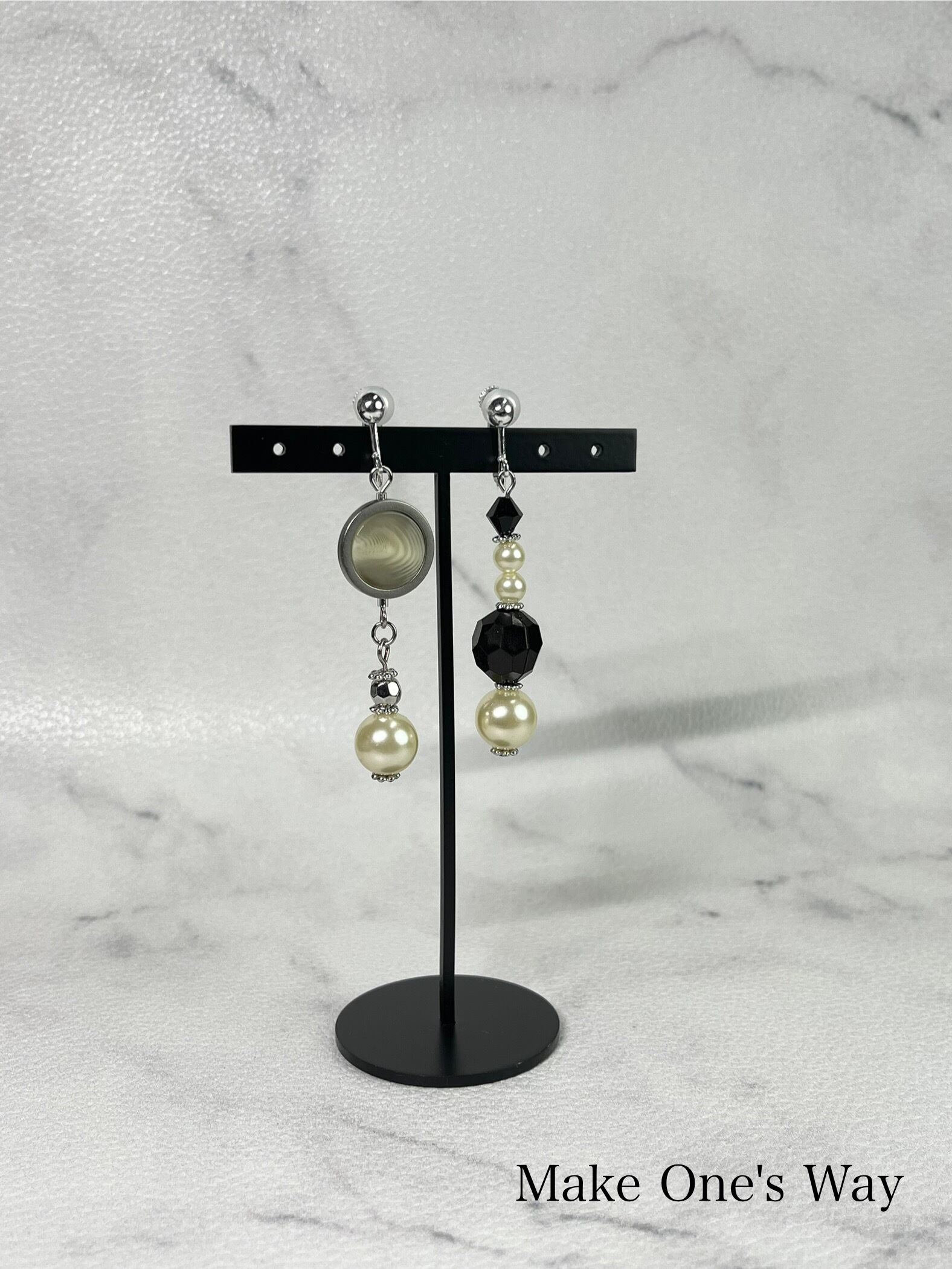 ◆ブラック×シルバーのクールな雰囲気のイヤリング。